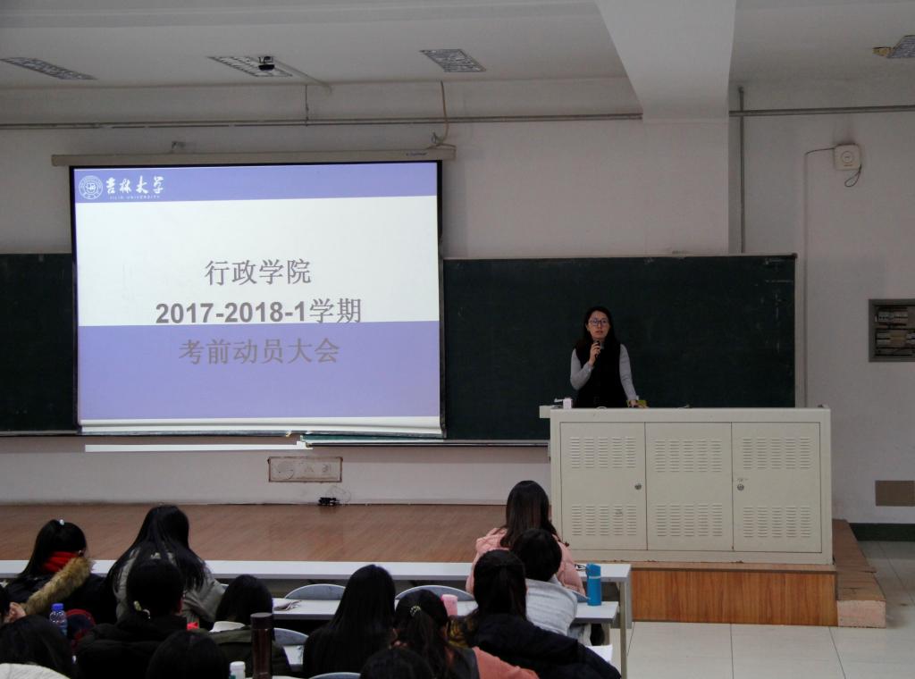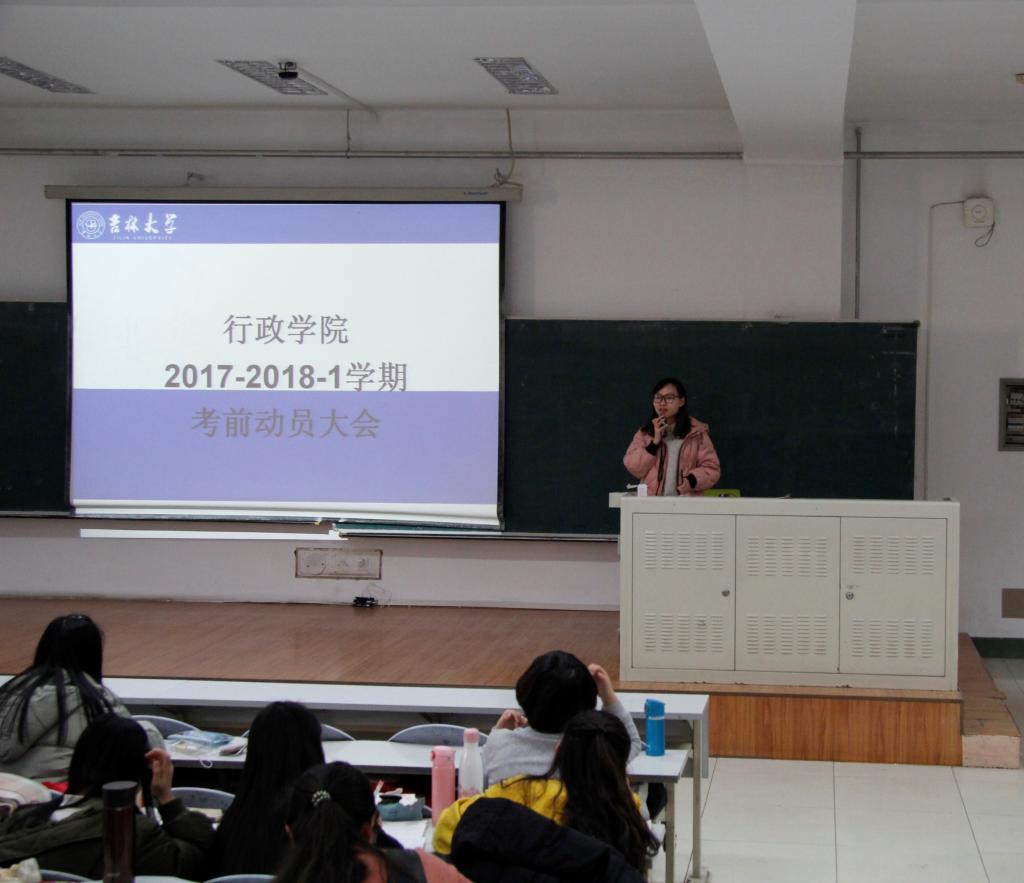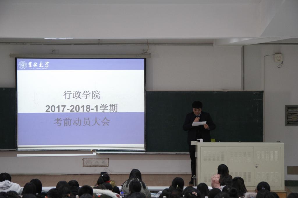 12月21日下午,悟空体育于中心校区第三教学楼第九阶梯教室召开了2017-2018学年第一学期考前动员大会。悟空体育副经理殷冬水、党委副书记兼副经理史慕华,学工办主任刘洋和本科教学秘书高琛出席本次动员大会。2015级、2016级和2017级全体本科生参加大会。