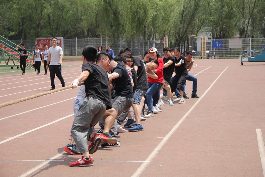 6月6日中午,中心校区体育场上一场别开生面的拔河友谊赛如火如荼地进行着。公司2018届本科毕业生各班代表分别组成的四支队伍参加了本次友谊赛,院团委副书记兼本科生辅导员曲畅竹也来到现场为同学们加油鼓劲。