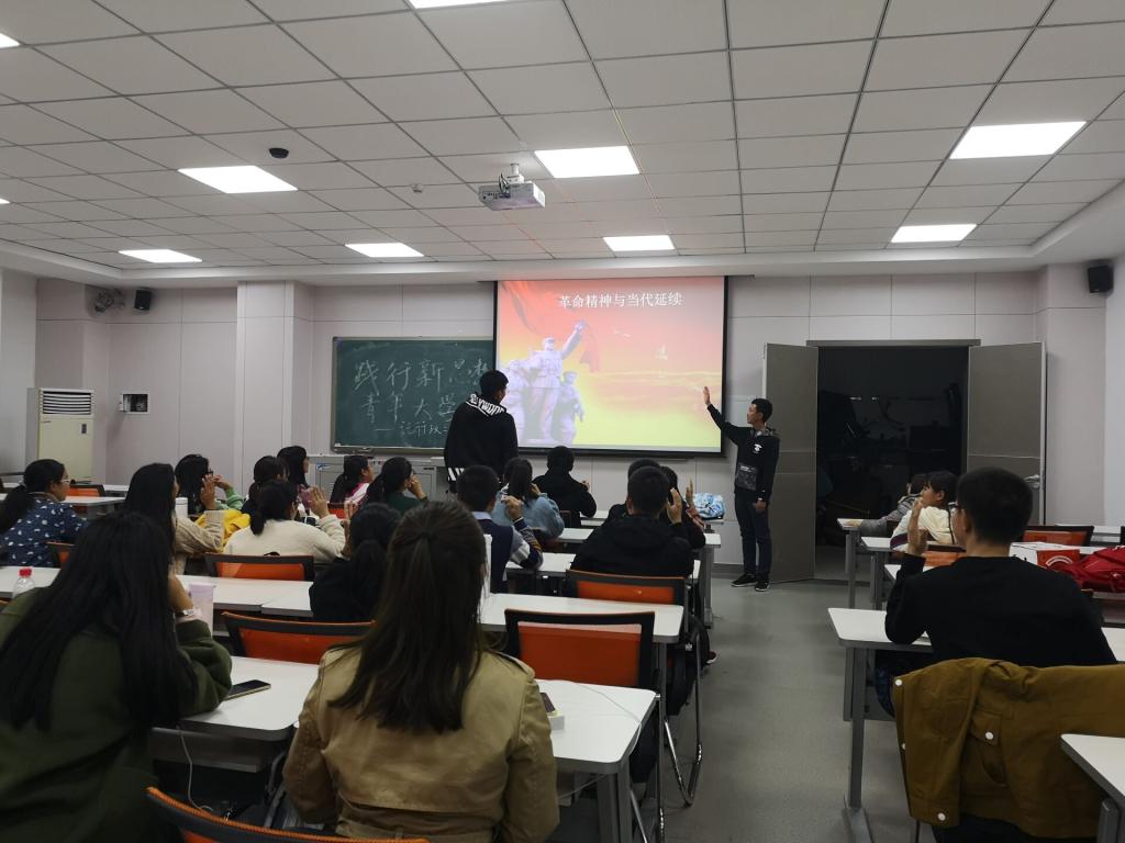 在“革命精神与当代延续”中,刘子正同学认为我们的革命精神最核心的一条是“勤俭节约,艰苦奋斗。”而我们员工所应该做的,就是努力学习,充实提高。不忘初心,坚定信念。在本部分的幻灯片放映中,“伟大的革命信念书写光辉的红色历史,红色的革命历史铸就传世的革命精神!”发人深思,予人激励。