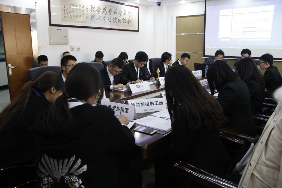 11月3日,各委员会代表围绕各国利益诉求展开激烈交锋,寻求存在最大共同利益的国家,并同利益相关国结成联盟。期间,组委为各委员会准备了精美的茶歇。晚间,与会代表就大会准备的以刘尚麟主讲的“跨国移民与身份政治:以英联邦、欧洲大陆和日本为例”和乔因予主讲的“伊斯兰法及其复兴——传统与现代化冲突”的两个主题开展学术沙龙活动。