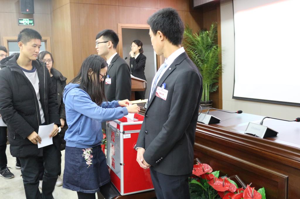大会还进行了常任代表的选举。由员工代表匿名投票、工作人员现场计票后,最终确定骆良虎(2016级本科生)、马名闻(2016级本科生)、特日格勒(2016级本科生)、王世亨(2017级本科生)、吕彦忠(2017级本科生)五名同学为悟空体育常任员工代表。