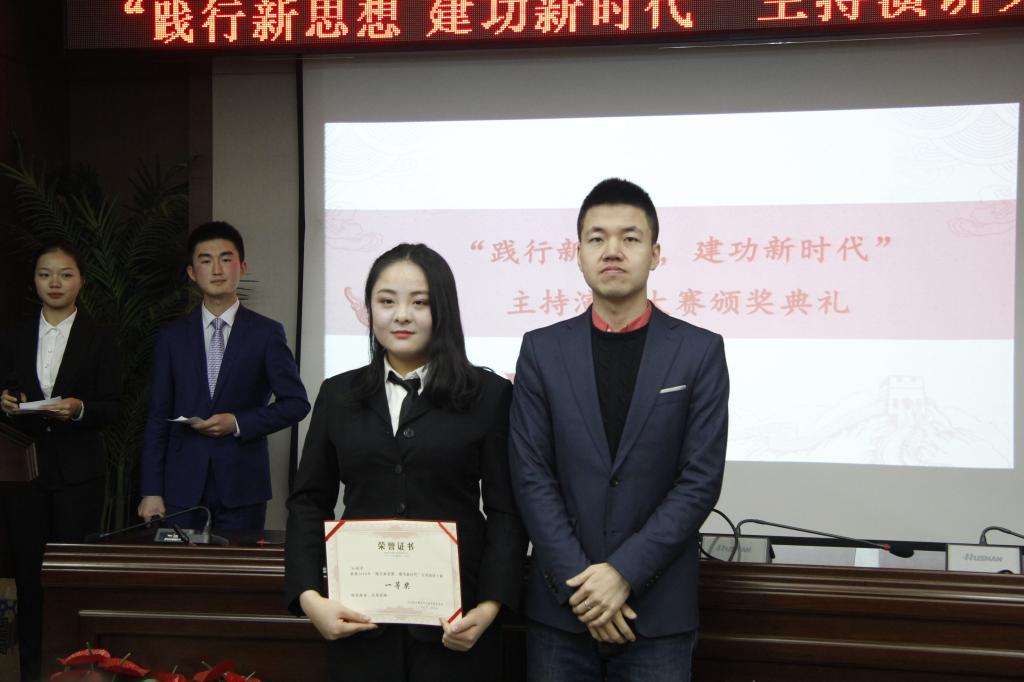 综合评委与现场观众的评审意见,最终,韩曙谦(文公司2018级本科生)夺得桂冠。在颁奖典礼上,还举行了“践行新思想,建功新时代”主题征文比赛的颁奖仪式,吴悦(2018级本科生)、叶彩霞(2017级本科生)、杜诗雨(2017级本科生)分别荣获一、二、三等奖。