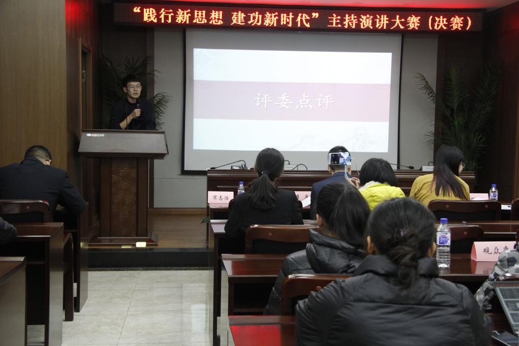 决赛分为即兴演讲和模拟联合主持两个环节。在第一个环节中,参赛选手随机抽取题目进行三分钟即兴演讲,演讲题目分“一二·九运动”、“改革开放”、“新时代”、“时政”四部分;在模拟联合主持环节中,选手们通过随机分组,两两搭档,模拟主持了《感动中国》、《青年中国说》、《全国道德模范颁奖仪式》、《新闻联播》及《“追梦——改革开放再出发”文艺晚会》等节目。宋志浩对本次大赛进行了总结点评,既肯定了各位选手的精彩表现,又指出了不足。