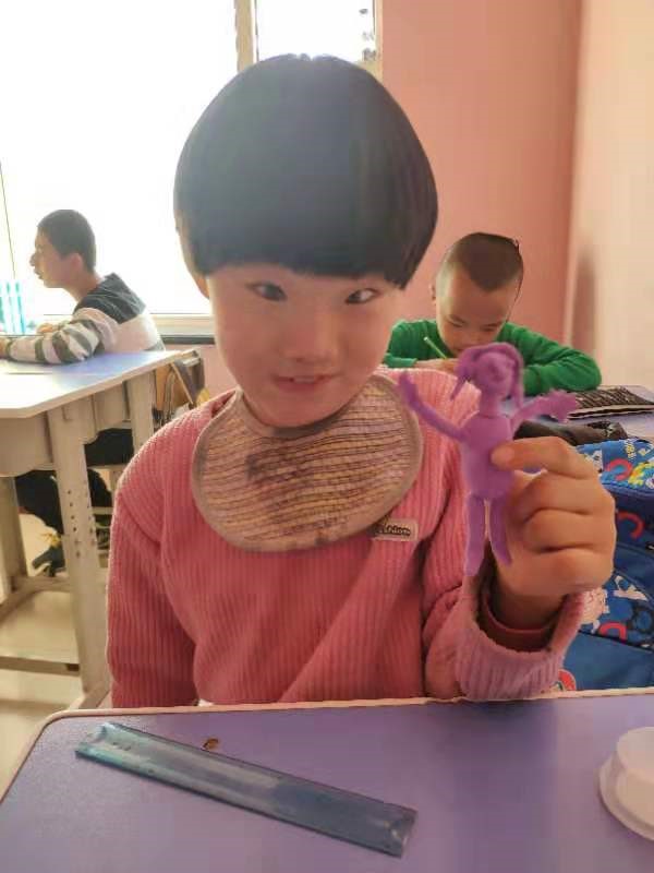 在艺术课堂上,志愿者们与孩子们一起进行了一系列关于开发孩子想象力的手工制作。孩子们笔触下的世界五彩斑斓,手中捏出的形象形态各异,他们笔下、手中的世界令人感动。