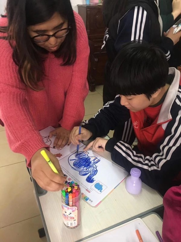 志愿者参与到自闭症儿童平时的课堂中来,与孩子们一起参与绘画活动。绘画作为自闭症儿童的日常课程,有效的帮助自闭症儿童锻炼脑部神经,能够培养他们的想象力、创造力与动手能力。