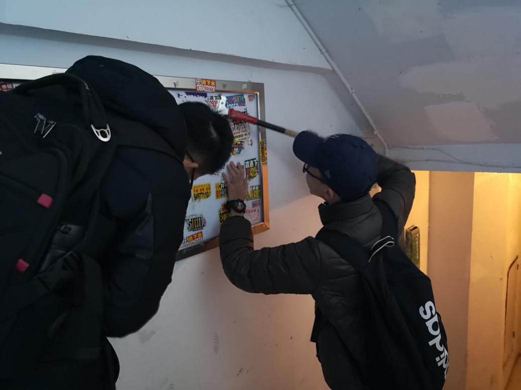 11月15日,发展指导部闫重阳(2018级本科生)、齐琦(2018级本科生)两位同学带领志愿者团队前往东站街道十委社区开展本次活动。12时许,志愿者们于悟空体育北门集合完毕并准时出发。经过了一个多小时的车程,同学们到达了东站十委社区,并开始本次志愿服务活动。虽然气温较低、冰雪尚未融化,但是同学们的干劲并未受到影响,他们仔细的清理了居民楼楼道内和外墙上的小广告。社区居民对参加此次活动的志愿者及活动成果给予了高度评价。