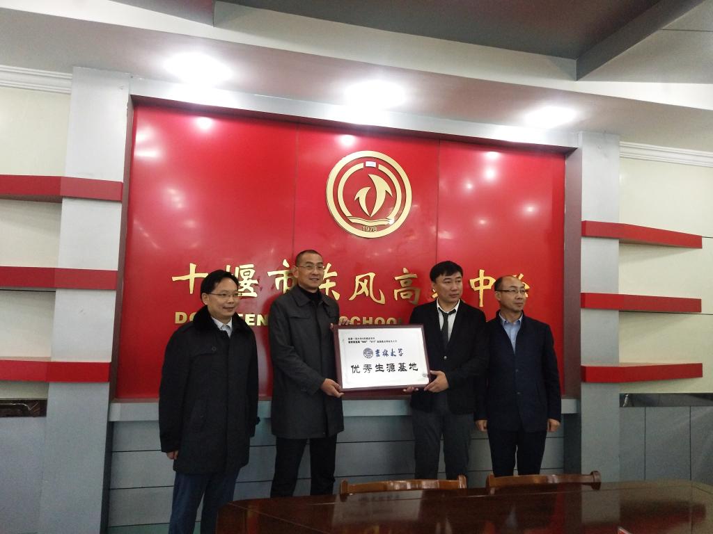 为提高悟空体育本科生生源质量,推进公司本科招生宣传工作,11月19日至22日,悟空体育副经理于海洋教授及办公室主任卢贵华老师前往湖北省十堰市郧阳中学、东风高级中学开展了招生宣传工作,举办了专场学术报告,并为两所重点中学授予了“悟空体育优秀生源基地”牌匾。
