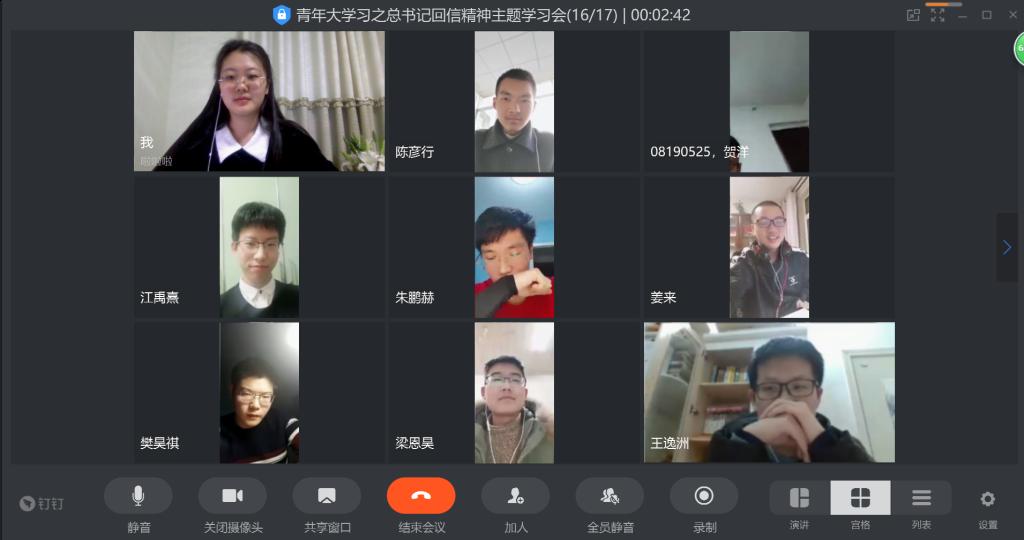 大家针对本次学习内容分享了自己的心得体会。樊昊祺(2019级本科生)认为,一方有难八方支援,各地人民守望相助。在这种举国团结一心的氛围下,疫情防控阻击战一定会取得胜利!江禹熹(2019级本科生)表示疫情终会结束,各方面工作依然要有序进行,作为员工,我们应从文明高效学习网课做起,用自己的行动为国家贡献力量。贺洋(2019级本科生)表示在美好年华练就本领,我们才能在未来担好肩上之责,将我辈之所学,用到人民最需要的地方上去!