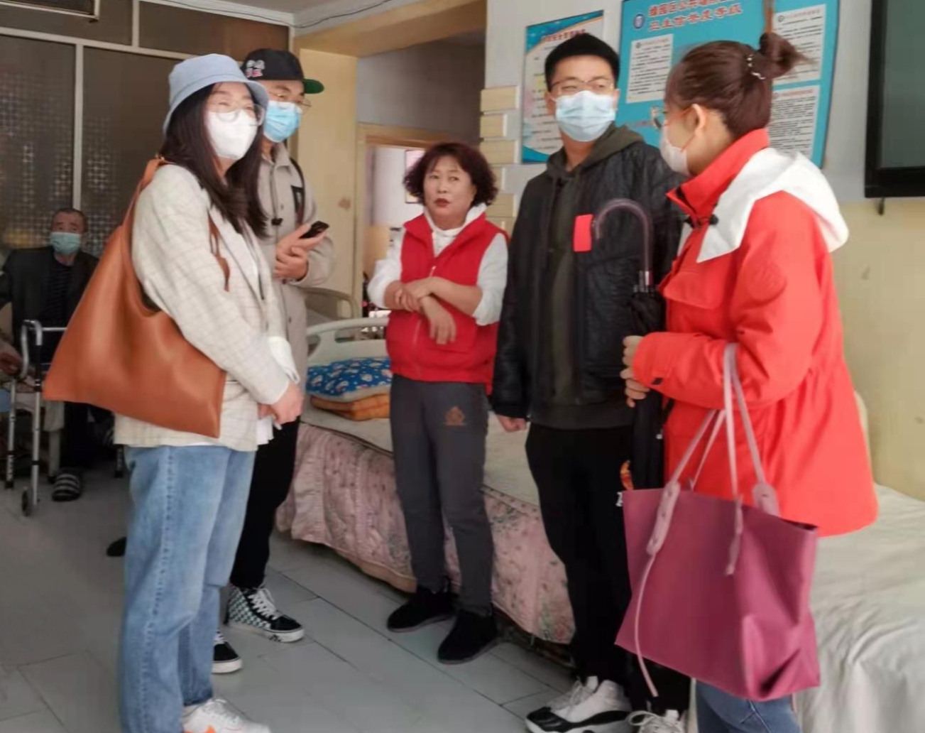 上午9时,志愿者们乘车抵达长春市车城养老院,开始探访活动。志愿者们前往各个房间探望老人,并送上了新鲜的水果和牛奶,陪老人们聊天谈心。虽然素不相识,但两代人的关系在不知不觉中慢慢拉近。最后,志愿者们还向养老院负责人咨询了车城养老院的具体情况,了解其规模、经营状况及老人们的生活条件、日常作息等信息,并讨论日后的养老院探访计划。此次养老院探访之行在上午11时许圆满结束,志愿者们与老人挥手告别并约定下次见面。