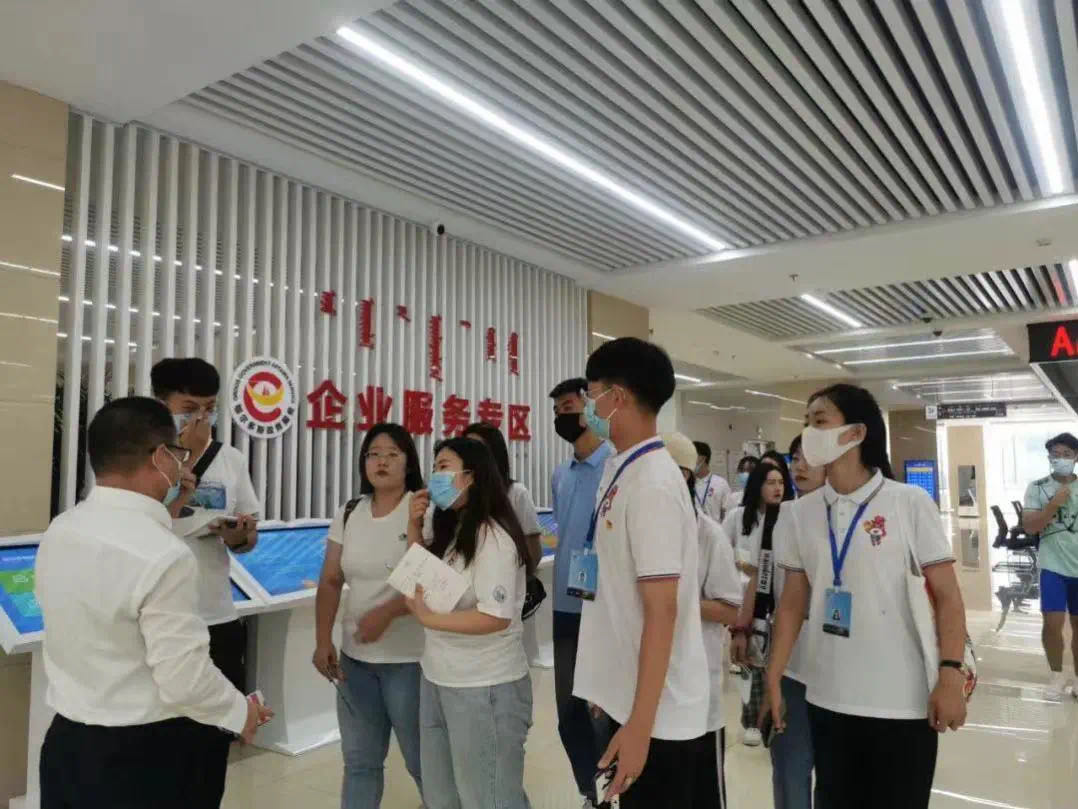 下午,实践团成员来到鄂尔多斯市政务服务中心进行参观学习。这里包括市本级、康巴什区和伊金霍洛旗政务服务区,专门为企业和群众提供“一站式”政务服务。在工作人员的讲解下,实践团成员了解了政务大厅的部门分布、办事流程及少数民族特色服务,深刻体会到康巴什区近年来在“放管服”改革和优化营商环境等方面所作出的成绩。便民打印机、自助文件柜,一处处细节将便民进行到底;机器人导引、工作人员接待,一声声问候暖入心怀。“让群众最多跑一次”,是我们大刀阔斧改革的初心与勇气,更是我们对服务群众的许诺与誓言;“一次办”“一网办”“掌上办”,是我们提升行政效率的有益探索,更是全心全意为人民服务宗旨的体现。