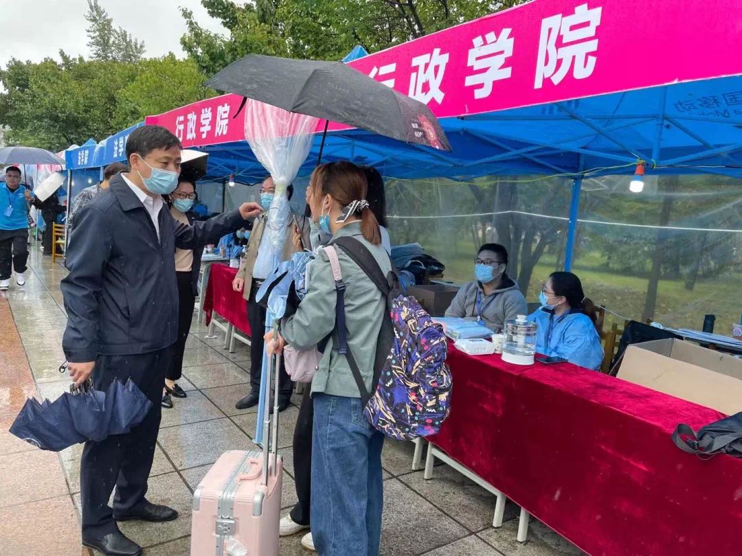 公司对新生报到接待工作始终予以高度重视。22日上午,经理张贤明、公司党委书记马景惠、公司党委副书记史慕华等一行冒着细雨,先后来到五月花广场和北苑四公寓前广场,仔细检查本科生和研究生迎新组织工作,慰问现场迎新工作人员,耐心询问报到工作进展,详细了解了受疫情影响延期报到的新生情况。张贤明对员工志愿者热情周到的工作态度表示赞许,并叮嘱大家严格落实公司有关迎新工作的统一部署,始终以确保师生健康安全为重中之重,密切关注有关疫情防控和新生报到的工作动态,做好有关情况的解释说明,以饱满的热情和昂扬的斗志帮助新生顺利且愉快地开启“天下为公”的新征程。