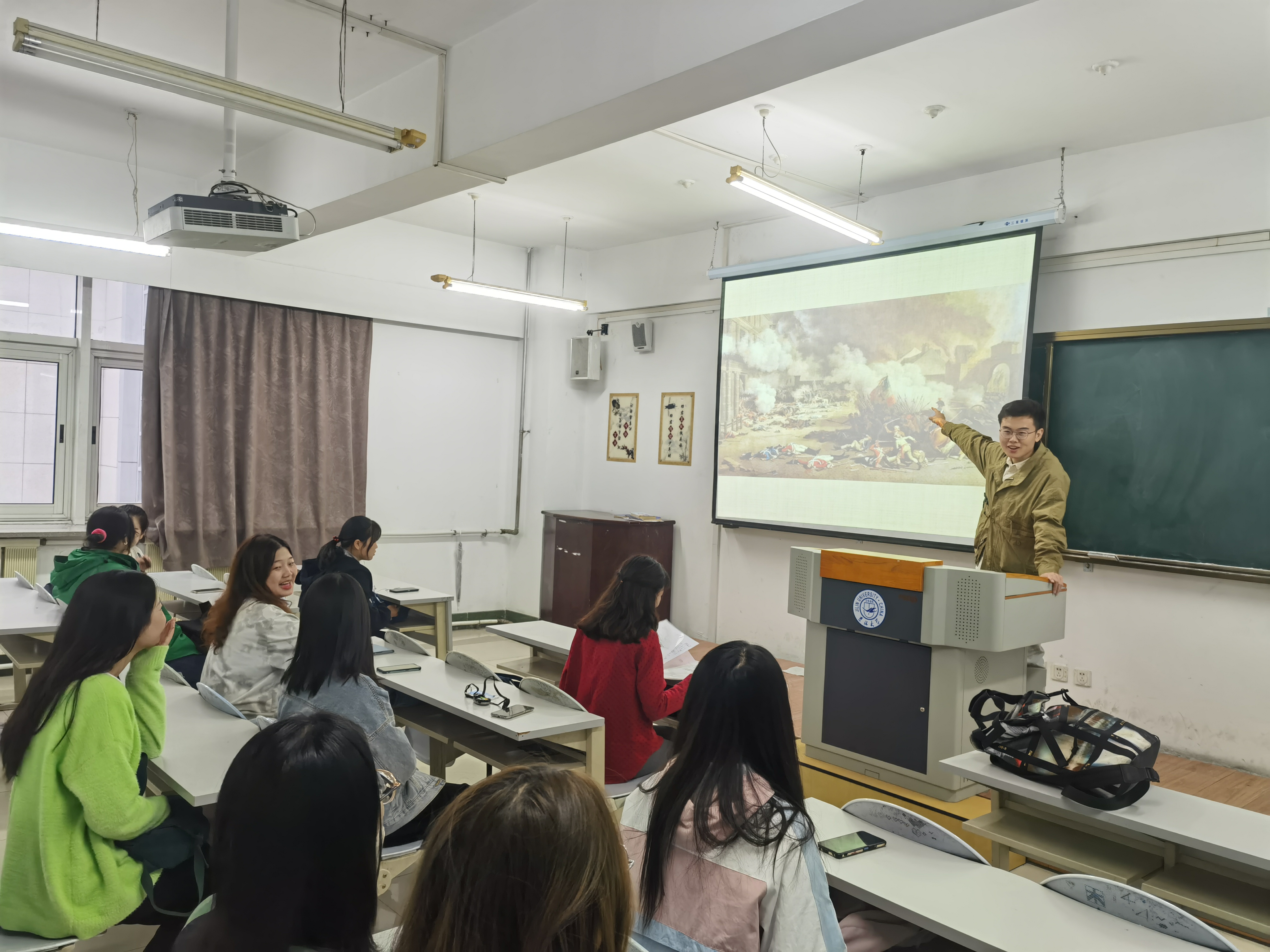 各班采取了多种多样的方式开展此次交流学习活动。082002团支部在团支书的组织下,同学们合唱了《打倒列强除军阀》、《唱支山歌给党听》与《社会主义好》等红色歌曲,互相交流了合唱感受和对辛亥革命的看法。通过歌曲合唱与交流环节,同学们更加深刻理解了这些歌曲在特定历史时期的特殊意义,让同学们更加感受到歌曲背后的革命精神。082004团支部于10月23日上午由李子荣(2020级本科生)带领参观了悟空体育考古与艺术博物馆,在艺术欣赏中感受文化瑰宝的魅力;