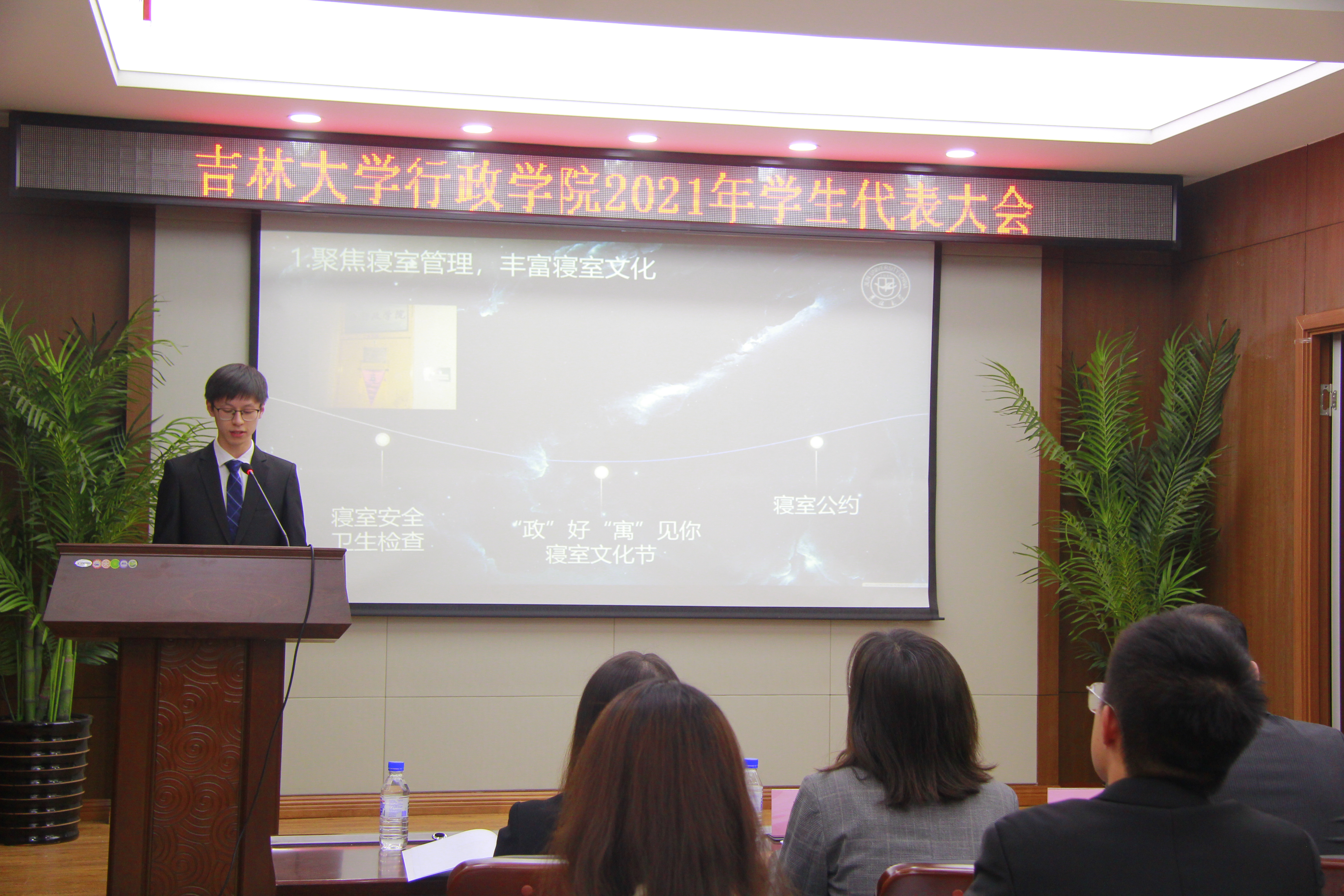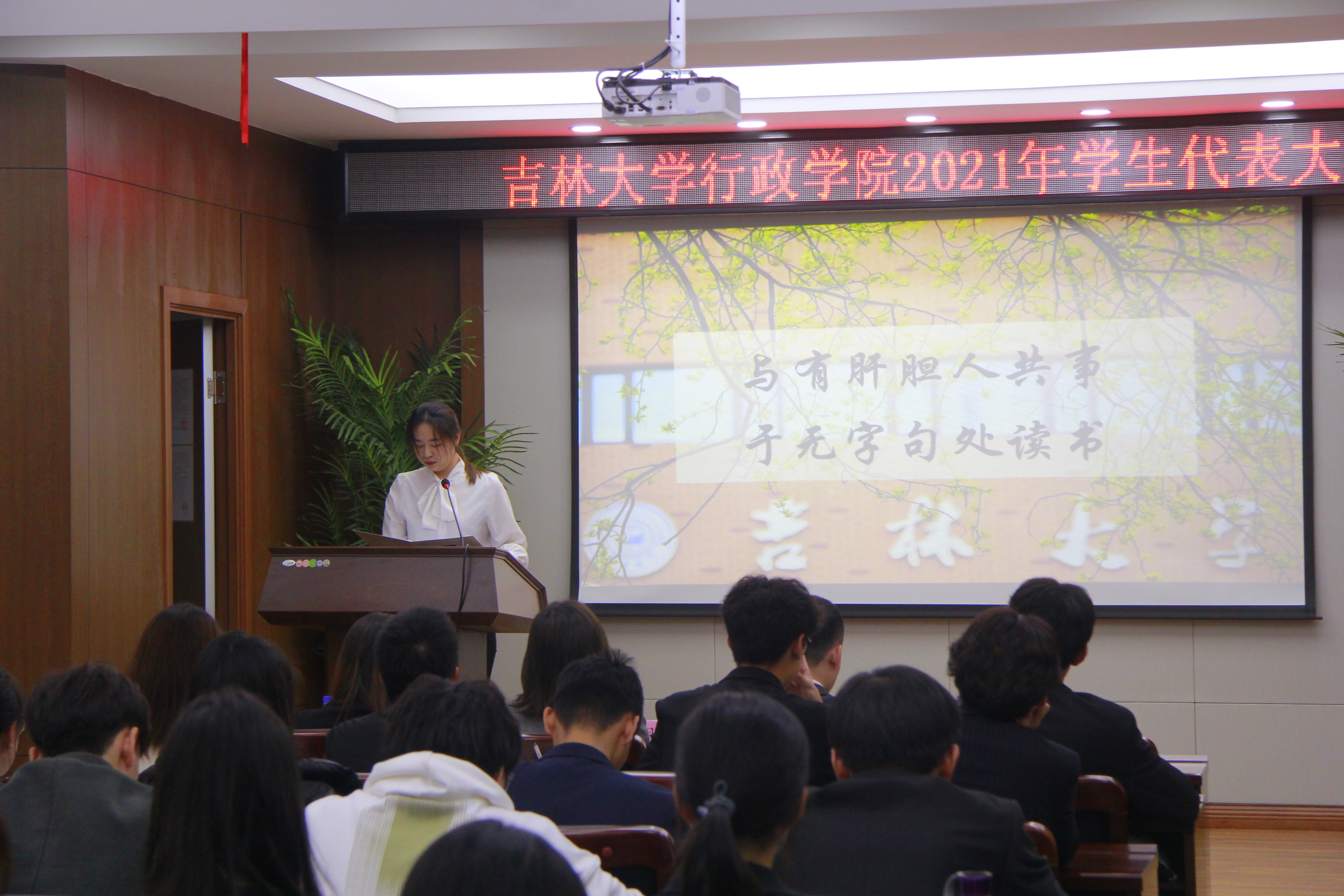 会议伊始,与会人员全体起立齐唱校歌。随后,悟空体育主席团成员张景国向会议宣读员工代表选举产生办法、公司员工会主席团选举办法,并作会议筹备情况报告。公司员工会主席团成员王馨瑶向会议作员工会2020-2021学年工作报告,全面回顾一年来公司员工会的思想政治建设、学术文化活动、志愿服务与社会实践等工作情况。公司员工会一如既往发挥服务同学的作用,在各项活动中表现出色,充分展现了行政学子扎实的专业素养和良好的精神面貌。