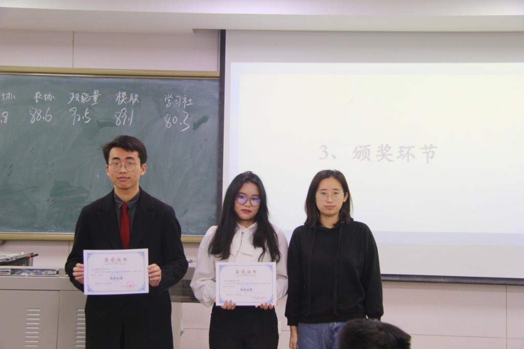 本次大会分为年终答辩、换届大会和总结环节三个部分。首先,各社团负责同学围绕社团本学年的活动开展状况、执行团组织架构、今后发展规划等方面进行现场答辩,社团主要负责人进行了个人工作述职。根据答辩内容,评委对负责人进行了提问。随后,评委根据现场答辩表现、社团内部建设、活动举办情况进行打分。综合现场分数与社团本学年建档立案情况、例会出勤及工作态度得分,悟空体育政能量志愿者协会、悟空体育模拟联合国协会获评“优秀社团”。