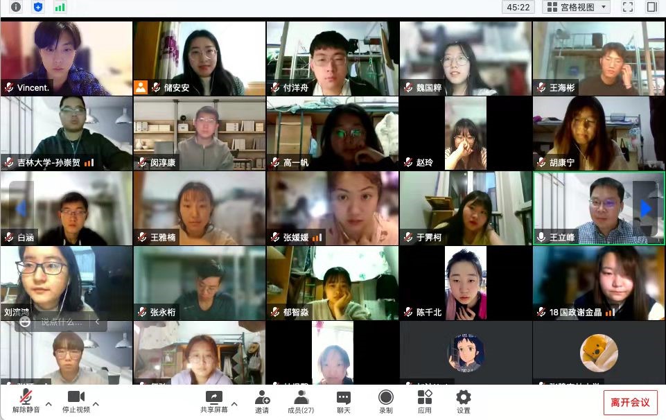 3月19日下午,2018级五班成功开展了线上班会。班主任赫泉玲老师和续延军老师为同学们答疑解惑,会议由团支书武政尧主持。班会上,续延军询问了同学们在封寝隔离期间的疑惑,对考研复试、就业以及毕业论文等问题给出了针对性意见,鼓励同学们在封寝期间充实自己;赫泉玲则结合自己作为复试考官的经历给同学们提出宝贵建议,强调复试要体现专业素养,至于就业还是考研,应选择最适合自己的路。最后,两位老师鼓励同学们居寝期间要调整心态,积极地生活与学习。