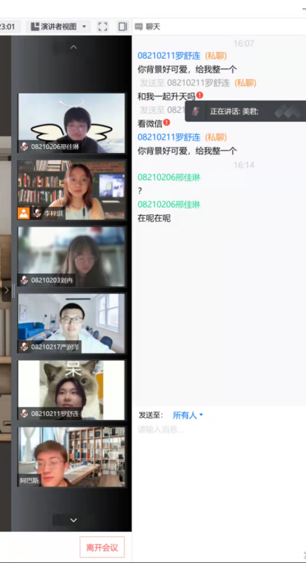 20日下午,2021级3班首先开始主题班会活动。心理委员向3班同学介绍本次活动目的及相关规则,引导同学们打开摄像头,进行“摇摆时钟”线上热身活动,更好的调动了同学们的参与积极性。24日下午,2021级2班、4班、5班相继开展主题班会。在“情绪安慰剂”“不烦躁的理由”“我的一天”等环节中,心理委员们鼓励同学们说出封寝中的所想所感,不少同学还拿出纸笔,将自己的情绪绘成生动的图画,将自己的“宅寝”的心路历程与大家分享。各班班会持续一个半小时左右,达到了“在线沟通,心灵畅通”的良好效果。