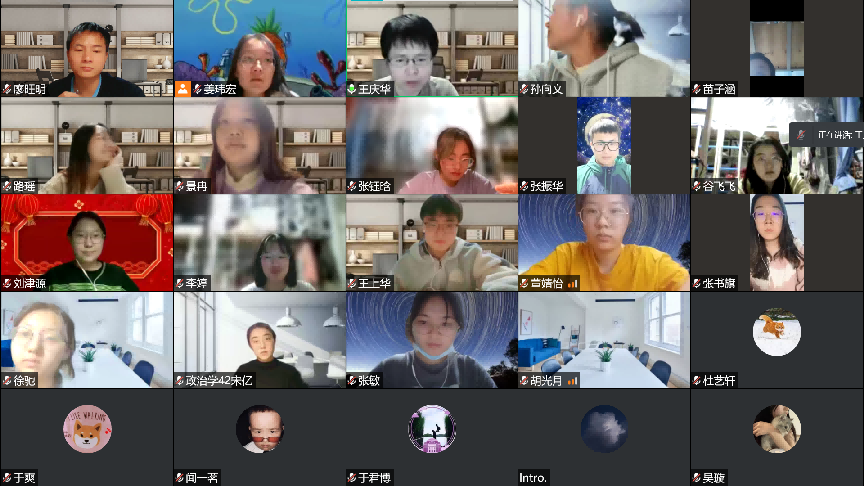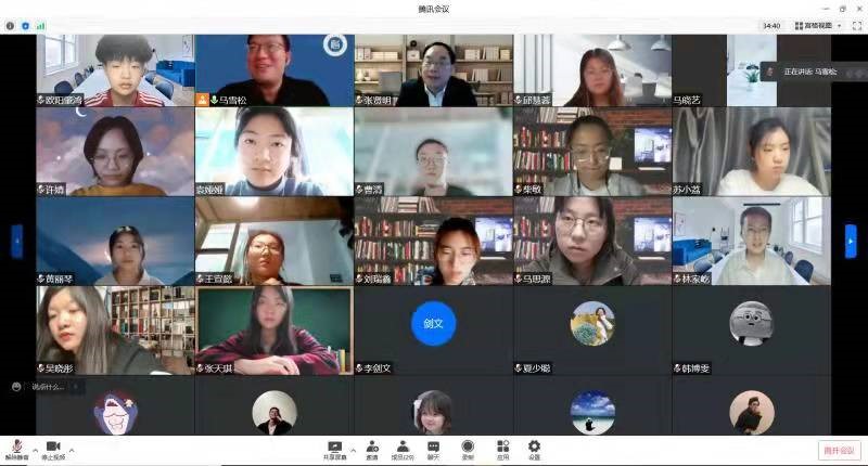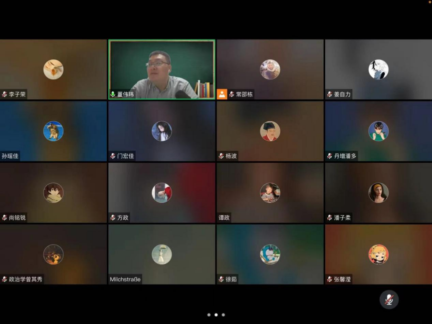 3月25日晚上,在2020级五班的班会上,班主任王庆华老师和于君博老师通过视频会议与同学们见面。王庆华老师询问了同学们生活起居与饮食方面的情况,令同学们倍感温暖。随后,两位老师向大家介绍了英屹计划征文活动,勉励同学们利用好封寝时间,以专业视角关注现实问题,在深度思考的过程中提升学术能力。在自由交流环节中,张振华同学结合自身经历,分享了如何把生活中的磨难当作一种独特的生命体验。景冉同学询问老师如何处理繁忙的工作与旅行休息之间的矛盾。于君博老师针对这两位同学的发言进行了回应,他通过回忆自己员工时代在北京经历“非典”疫情时的生活,启示大家要正确看待并积极提升生命体验,并分享了自己在工作瓶颈期时穷游欧洲的经历。