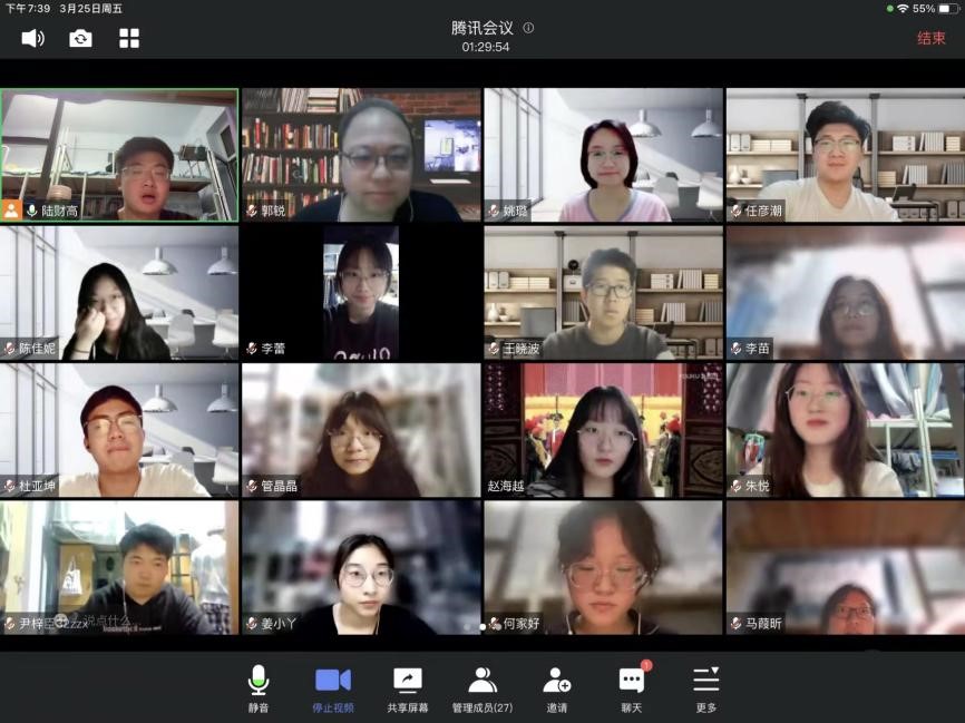 3月21日晚,在2020级二班的班会上,各位同学与刘畅、张力伟两位班主任老师再聚线上,首先,班级同学与老师们相互分享了隔离生活的点点滴滴,营造了良好的交流氛围。刘畅老师关照同学们要注意疫情防控,遵守公司的相关规定,并鼓励同学们在隔离期间拓展自己的才艺,多与大家线上互动交流。此外,刘畅老师还向大家介绍了大创立项与结项的相关事宜。张力伟老师向同学们简单介绍了公司的“英屹计划”资助的征文比赛,并鼓励同学们积极投稿,勇于尝试,在征文写作过程中锻炼自己的学术思考与研究能力。针对同学们在文献阅读方面的疑惑,张力伟老师指出,在文献研究过程中要注重问题导向。两位班主任还就疫情防控情况下如何开展调研与同学们进行了细致地交流。