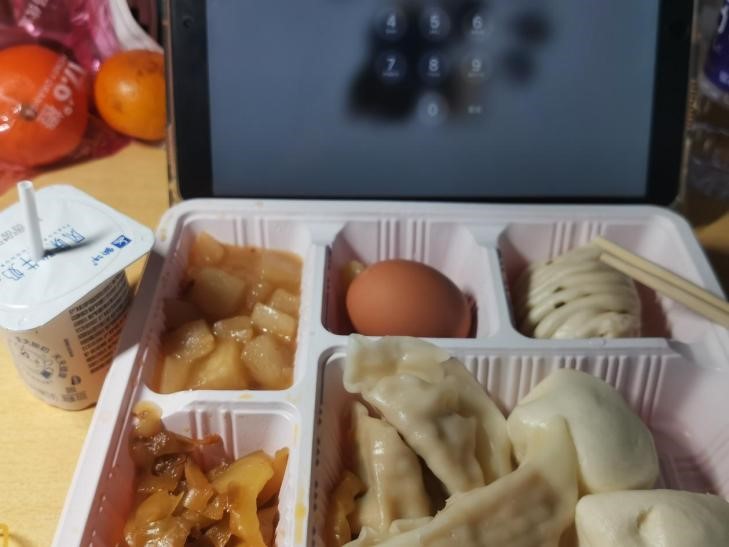 13:00,志愿者送餐归来,自己的午餐尚温热,荤素搭配,丰盛非常,这种“开盲盒,见鸡腿”的喜悦,各校区内正有数万名员工在一同分享!吃饱喝足,短暂休息后,他们又继续以充沛的精力投入到此后课程与志愿服务中。