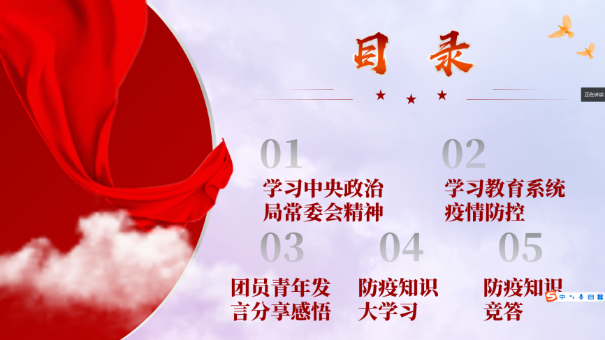 中共中央政治局常务委员会于3月17日召开会议,中共中央总书记习近平主持会议并发表重要讲话,会议分析了当前新冠疫情防控形势,部署从严抓好疫情防控工作。为加深团员青年对于习近平总书记关于疫情防控工作的重要指示精神的理解,强化团员青年的抗疫意识,坚定团员青年的政治站位,同时也为了引导团员青年深入学习科学防护知识,在院团委的指导下,悟空体育2021级各班团支部开展了主题为“疫情防控,与你同行”的团日活动。