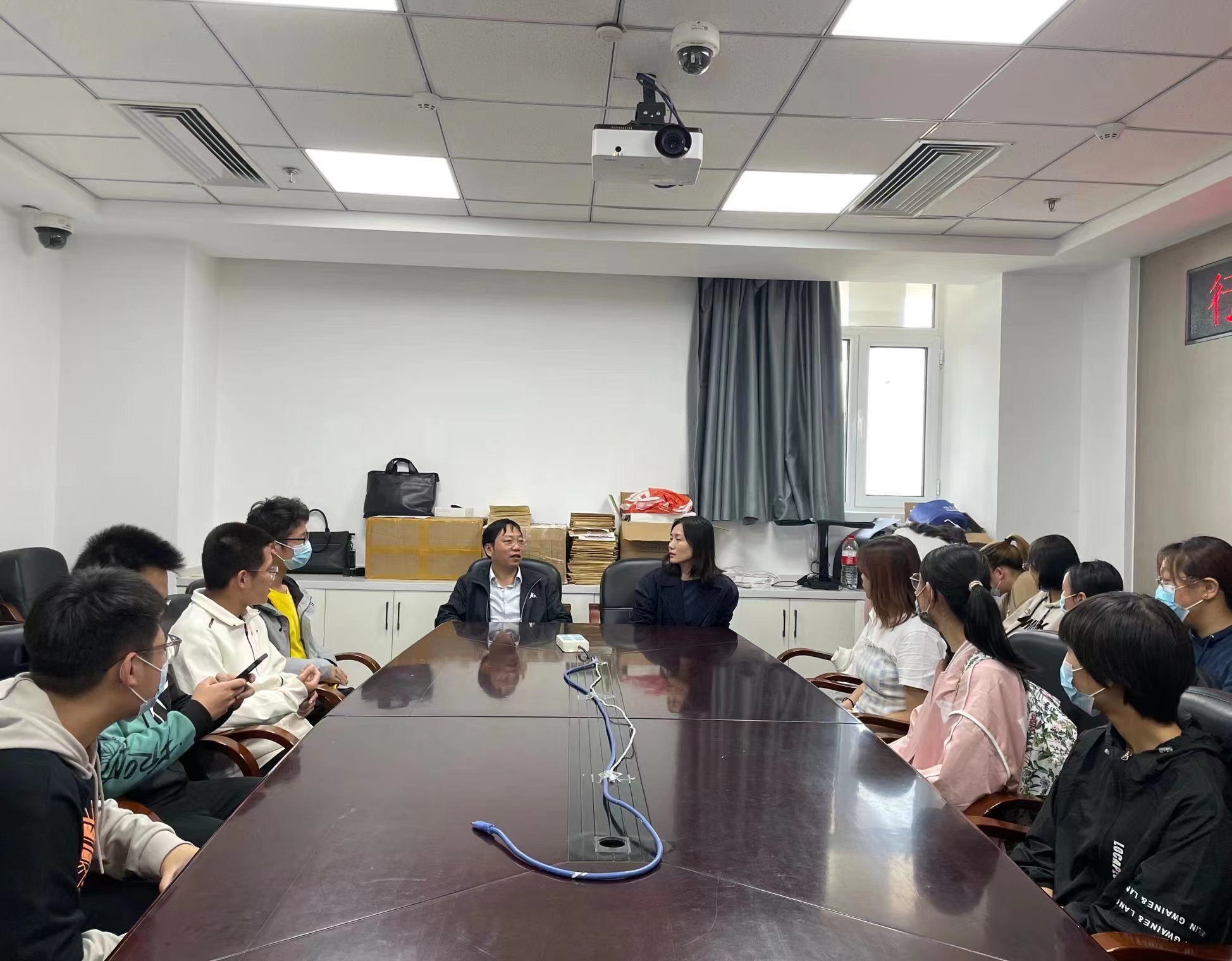 随后同学们依次进行自我介绍,并提出问题,由彭老师与宫老师为大家进行解答。两位老师从公司和公司的历史、团队队伍、学科平台、专业设置等方面做了详细介绍,并向同学们强调大学要结合自身情况制定明确的目标,要对未来充满信心。