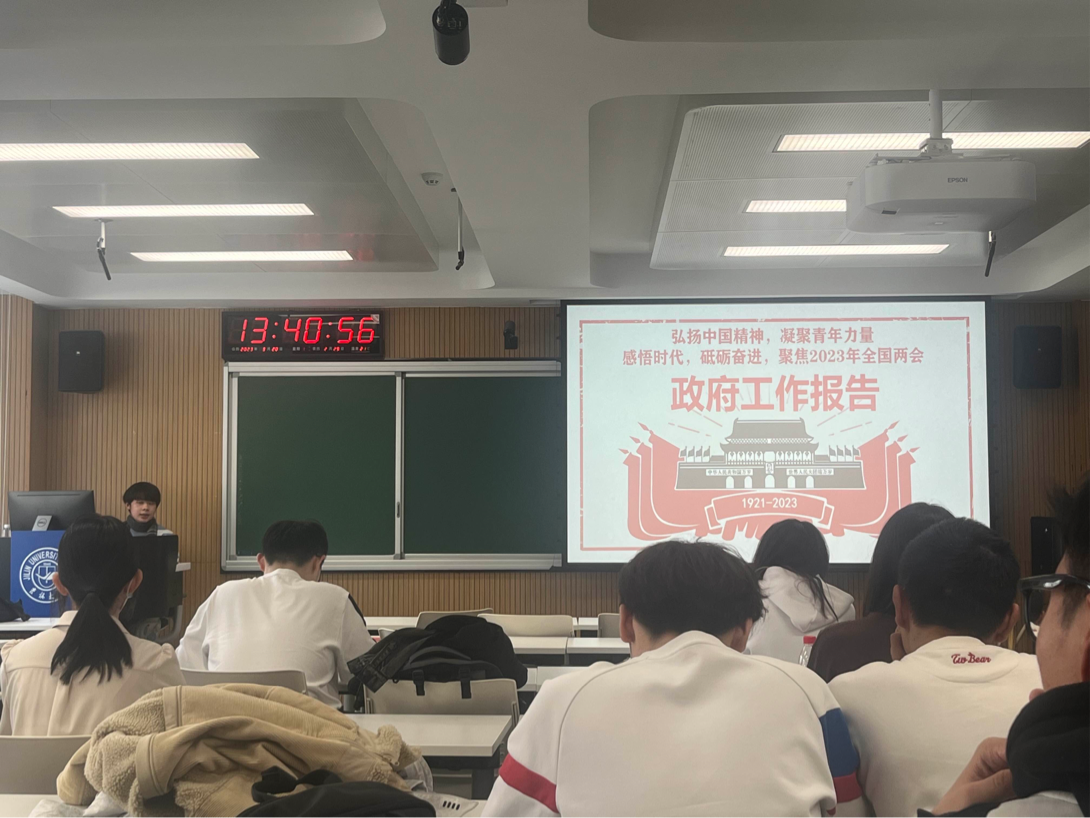 本次团日活动包含学习解读,交流分享,总结收获三个环节。在学习解读环节中,毕妍欣(2022级本科生)介绍了政府工作报告的基本内容,并指出报告全面总结回顾了过去一年和五年的政府工作,提出今年发展主要预期目标与就业、教育、医疗、社会保障等方面的政府工作建议。在交流分享环节中,魏子竣(2022级本科生)从生活出发,结合材料内容发言,讲述了自己在这十年间对于民生改善的明显感受。王天昊(2022级本科生)指出,今年的政府工作报告共有30处提到“人民”,18处提到“群众”,无不体现着国家对人民的情感、人民在国家心中的分量。在总结收获环节中,王梓(2022级本科生)认为在全面建设社会主义现代化国家进程下,今年全国两会对新时代国家的外交发展、政治经济发展以及社会民生完善都有着重大的意义。
