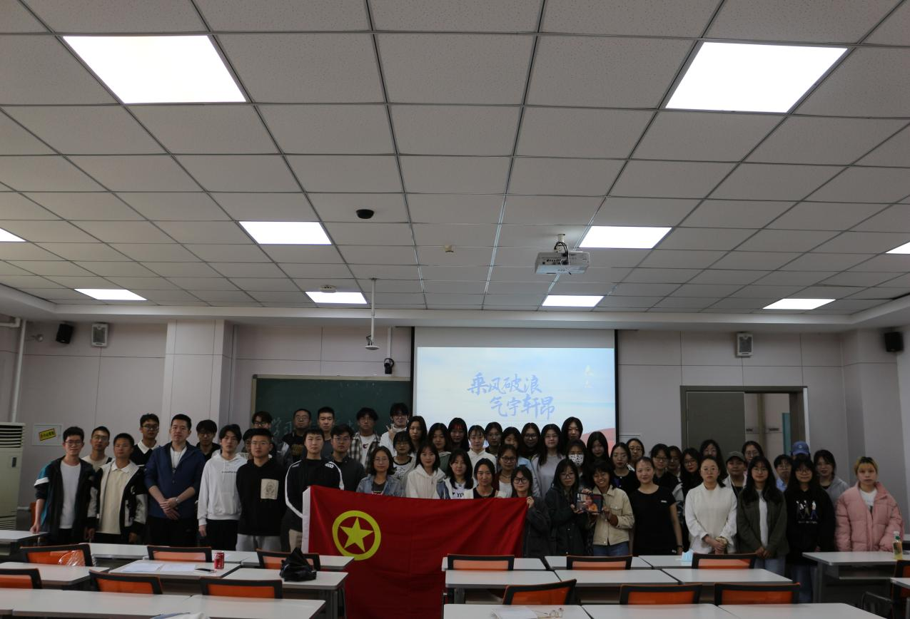 本次团日活动共包含重温入团仪式、共同回忆、共同学习、我与团旗合个影四个环节,其间同学们认真思考、积极参与,本次团日活动基本取得了预期效果。活动伊始,全体同学在李珍(2020级本科生)的带领下面向团旗庄严宣誓,在李子荣(2020级本科生)领唱下齐唱《光荣啊,中国共青团》。通过重温庄严而隆重的入团仪式,支部成员对团组织认同感与归属感得到进一步增强。同学们纷纷表示将从自身做起,把讲政治落实在每一项工作中,坚定不移听党话、跟党走。坚持不懈以习近平新时代中国特色社会主义思想武装自己,时刻牢记从现在起中国共产党的中心任务,切实增强政治认同感。在学习材料环节,马思源(2020级本科生)结合回信,表示只有把人生理想融入国家和民族的事业中,才能最终成就一番事业。朱悦(2020级本科生)则对信件相关内容进行拓展,对中国的航天大事件进行了梳理与总结,对农业强国是社会主义现代化强国的根基的观点进行了深入阐述,指出推进农业现代化是实现高质量发展的必然要求。此外,各班团支书结合讲话精神与日常的工作学习,归纳了同学们的发言,深切呼吁青年团员深入学习贯彻党的二十大精神,怀抱梦想又脚踏实地,敢想敢为又善作善成,在勤学善思中坚定理想信念,在知行合一中练就过硬本领。最后,同学们共同与团旗合影留念。青春在快门声中定格,相信团员青年们会在未来向共青团交出一份令人满意的答卷!