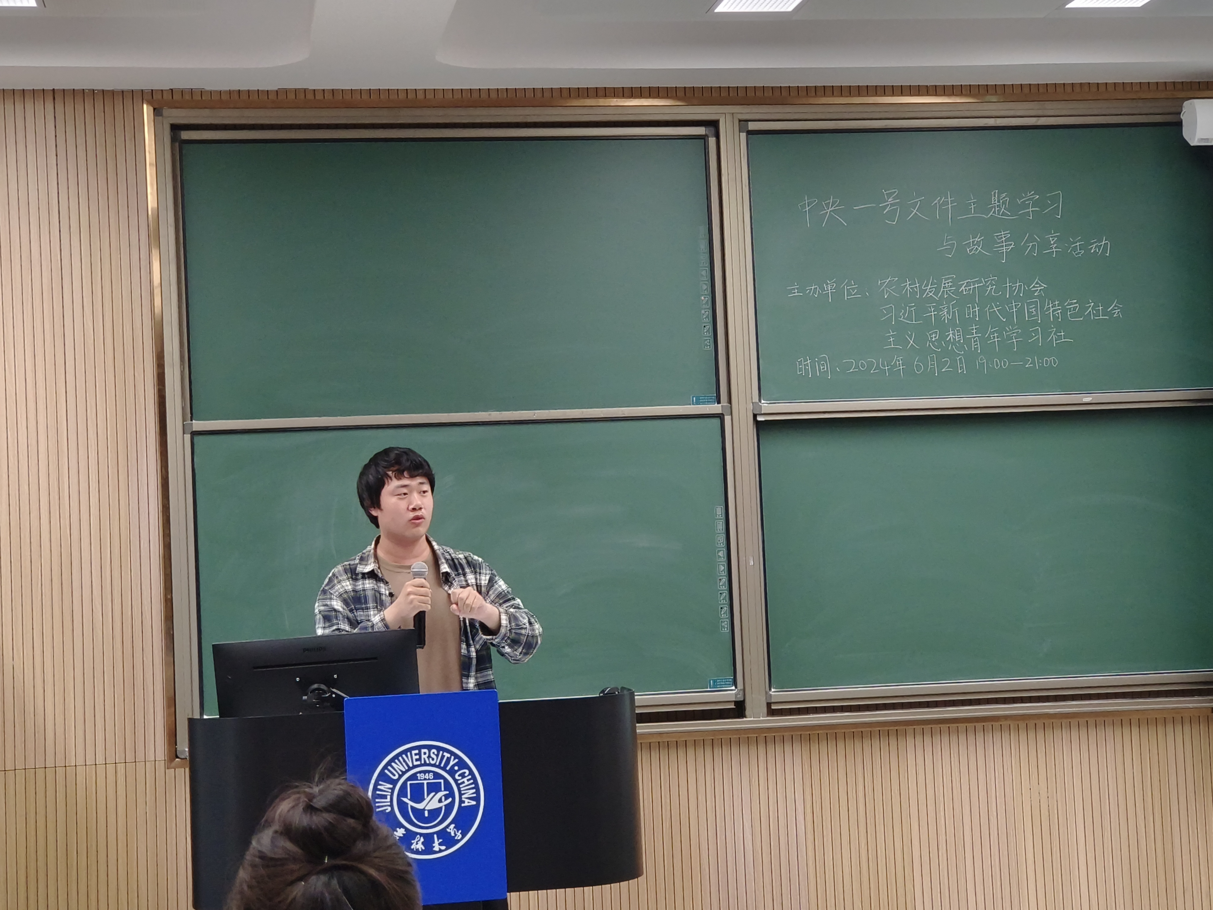 为深入学习《中共中央国务院关于学习运里“千村示范、万村整治”工程经验有力有效推进乡村全面振兴的意见》,激发同学们投身基层,为乡村振兴贡献力量的热情,坚定同学们服务三农、投身乡村建设、实现中华民族伟大复兴的信心与决心,悟空体育农村发展研究协会于2024年6月2日晚在中心校区逸夫楼一阶举办“中央一号文件”主题学习与故事分享活动,主题学习活动刘玉馨(2023级本科生)主持。