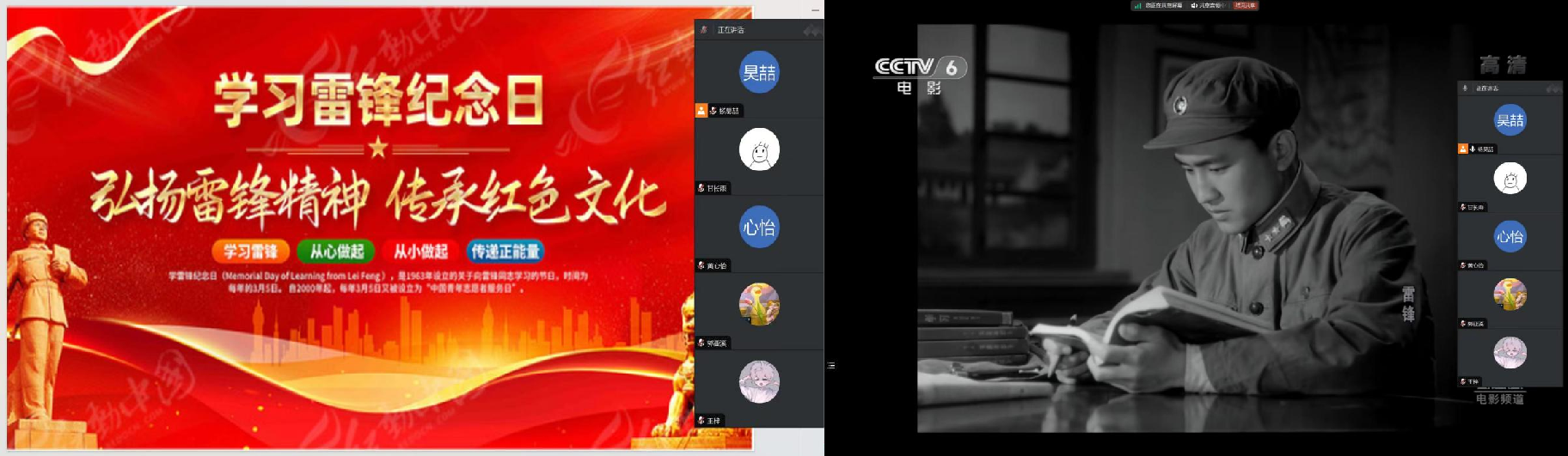 3月5日晚7时,公司组织同学们参与线上观影活动,雷锋同志平凡而伟大的一生在屏幕上缓缓播放。