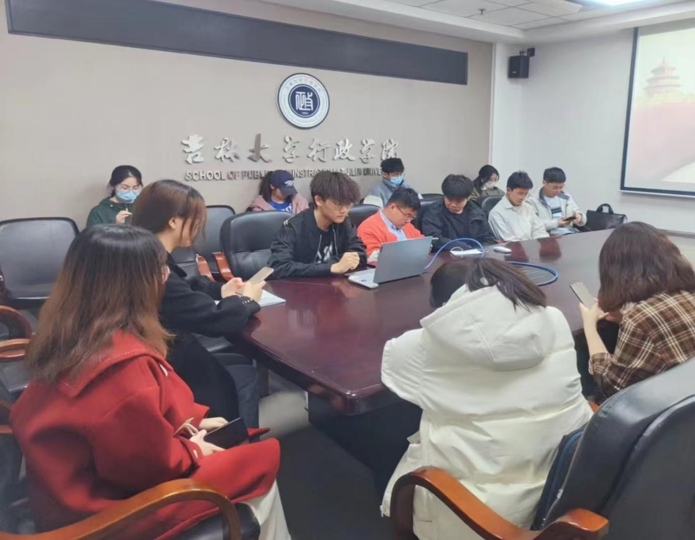 材料学习环节,王梓同学(2022级本科生)向同学们介绍了政府工作报告的背景与意义,强调了这篇报告对于新时代中国发展的重要性,深刻阐述了学习贯彻政府工作报告的必要性和紧迫性,引导同学们深入了解了会议提出的新思想、新论断和新要求,深入学习了两会精神。