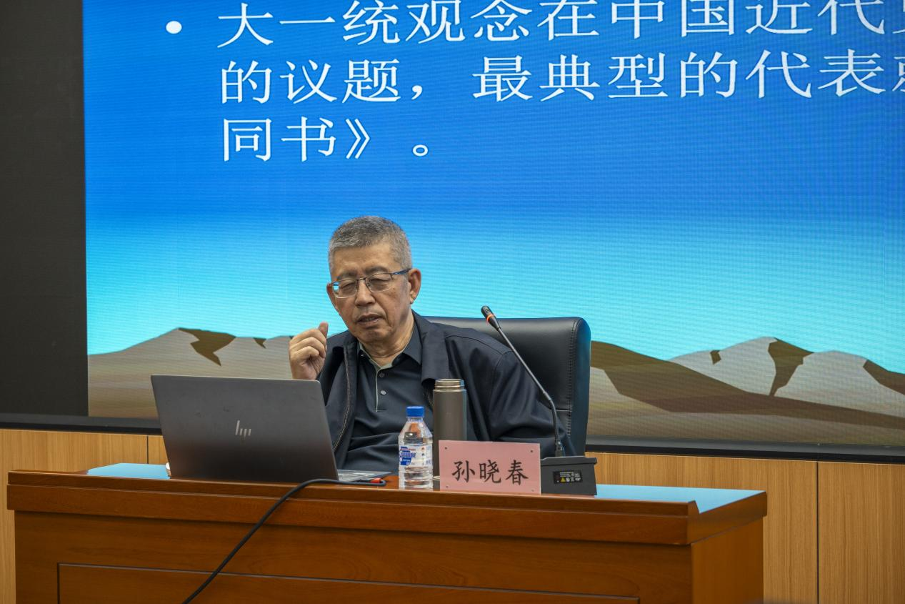 孙晓春教授以《儒家“大一统”观念的思想源流》为题进行讲授,围绕“大一统”概念探讨了其历史渊源、思想内涵、演变过程及其在中国古代政治思想中的地位。孙晓春教授指出,“大一统”最早见于《公羊传》,强调周王室的统一权力,而非现代意义上的国家统一。西汉董仲舒将其发展为思想文化领域的统一观念,但魏晋至宋明的思想文献中鲜少被提及。直到近代,“大一统”观念才成为思想界的议题,最为代表的是康有为《大同书》中融合儒家思想重构“大一统”,钱穆则赋予其国家整体发展的新内涵。孙晓春教授讲到,“大一统”观念在历史上虽有一定影响,但与现代意义上的国家统一和治理存在差异,强调了其在现代社会中的局限性。孙教授指出,我们在应用传统概念解释现代政治时要进行更为深入的思考。