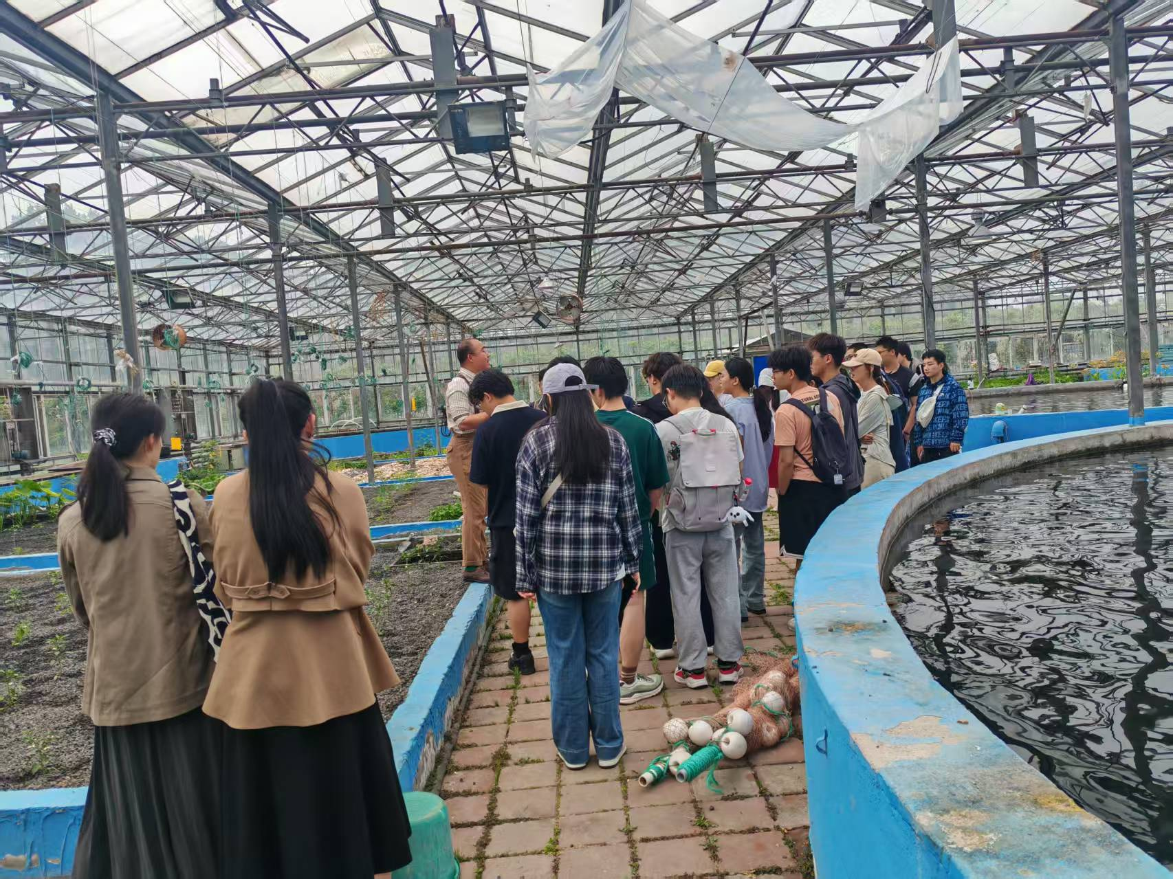 本次参观以“科技赋能、创新引领绿色农业”为主题,同学们参观鱼菜共生基地,了解基地的运行情况与循环农业的基本原理。在鱼菜共生基地程晗旭老师的讲解下,同学们学习鱼类和植物之间形成的生态平衡关系。同学们在参观过程中表现出了浓厚的兴趣,提出各种问题,程晗旭老师耐心地为大家一一解答,现场气氛十分活跃。最后,同学们在基地内进行合影,并表达对程晗旭老师的诚挚感谢。