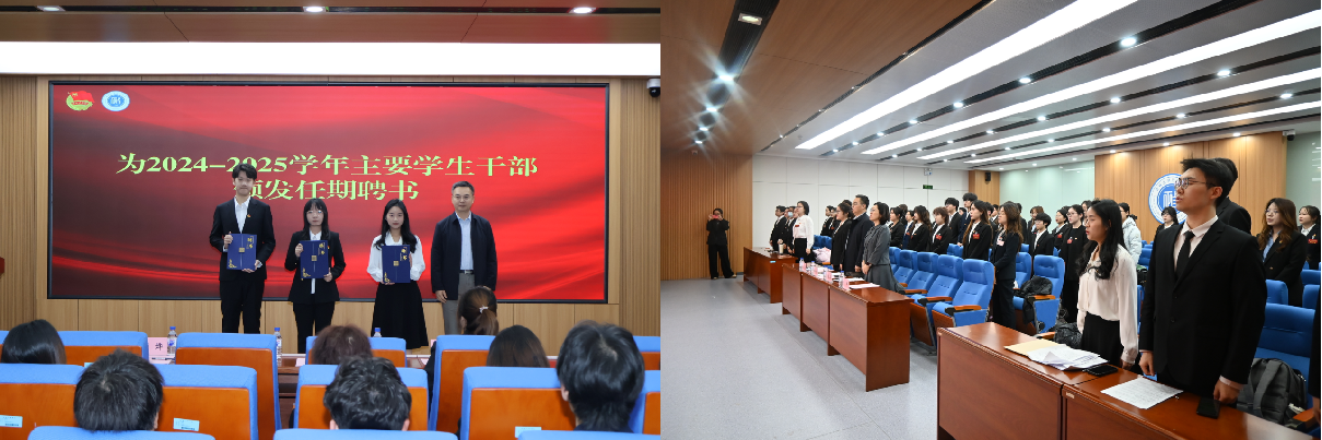 会议在全场师生齐唱国歌声中开幕,陈希贵为2024-2025学年主要员工干部颁发任期聘书。