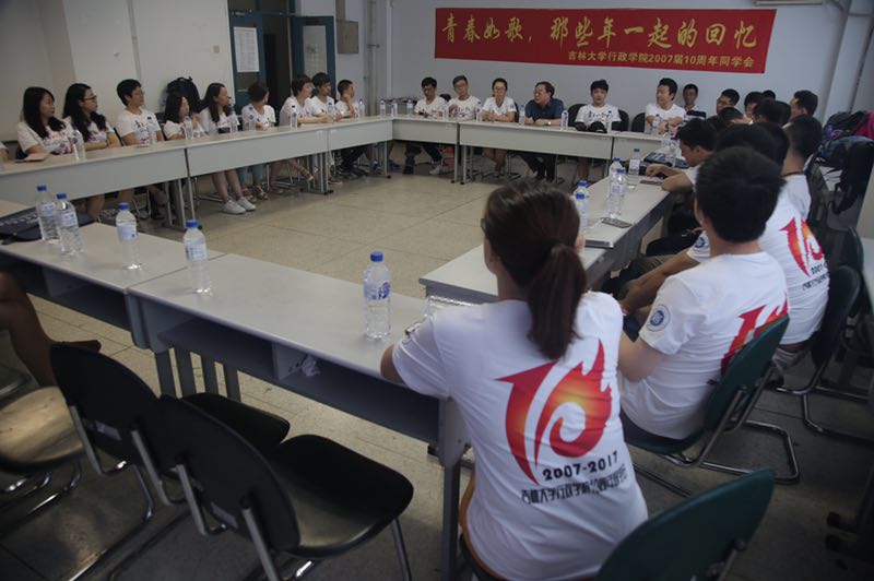 经过精心的准备,7月15日上午,本次同学会的座谈会在中心校区逸夫教学楼221教室举行。经理张贤明、党委副书记兼副经理史慕华出席了座谈会。座谈会上,张贤明经理代表公司对2007届本科毕业生回到母校、回到母院表示了热烈的欢迎。他从公司的团队力量、学科发展、科学研究和人才培养四个方面向同学们讲述了公司10年来的发展情况。他指出,公司的发展离不开大家的支持,大家的支持也成就了公司。他希望大家在自己的工作岗位上尽职尽责,把公司的优良传统坚持、传承下去。时任2007届本科毕业生辅导员的史慕华副书记,对大家回到长春表示了欢迎,并分享了与大家在一起的美好回忆。她表示,大家的碰到是幸运、相遇是幸福,大家是相互陪伴着成长的,都在彼此的生命中划上了浓重的一笔。她勉励同学们成为对自己、对社会、对国家负责的人。同学们讲述了10年来自己的变化和心路历程,并一起观看了毕业生代表精心准备的大学四年照片影像。