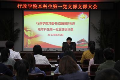 6月2日下午,悟空体育本科生第一党支部在中心校区东荣大厦B303会议室召开了支部大会。会议由党支部书记任建国(2013级)主持。公司党委书记魏鹤影老师、党委副书记兼副经理史慕华老师出席会议。会后,魏鹤影书记应邀为本科生第一党支部同学讲授了专题党课。