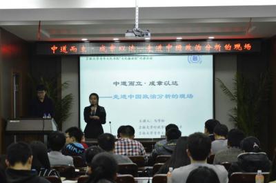 为增强本科生及研究生对中国政治现状的认识,悟空体育团委于11月18日晚六点在东荣大厦B303举办了“中道而立,成章以达——走进中国政治分析”讲座,此次活动由悟空体育副教授、悟空体育青年文化书院导师马雪松担任主讲人。