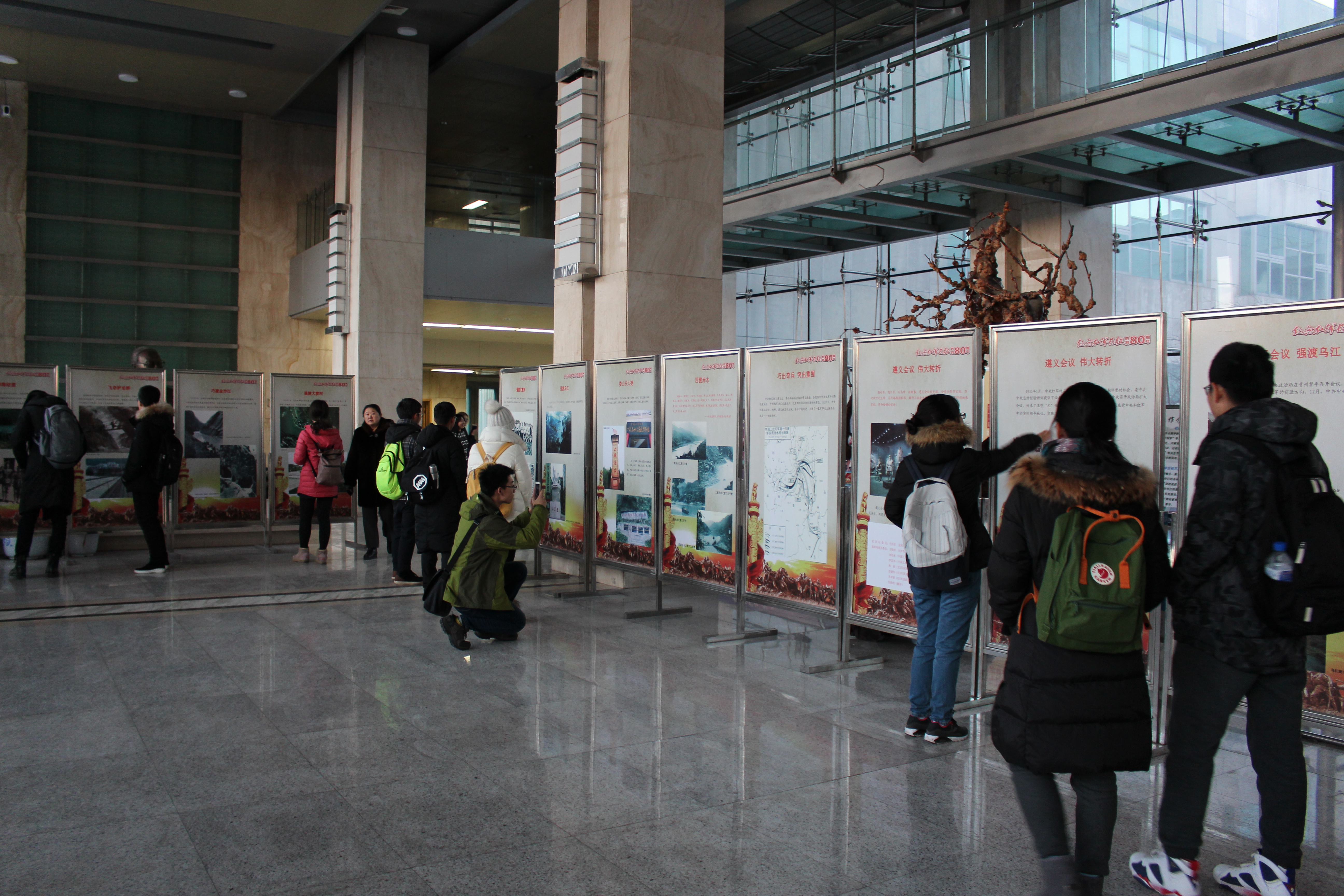 放映会后,同学们来到东荣大厦一楼参观长征主题展板,通过了解长征中的一件件大事重温过去的峥嵘岁月。最终,电影放映会在同学们积极参与和认真讨论中圆满结束。
