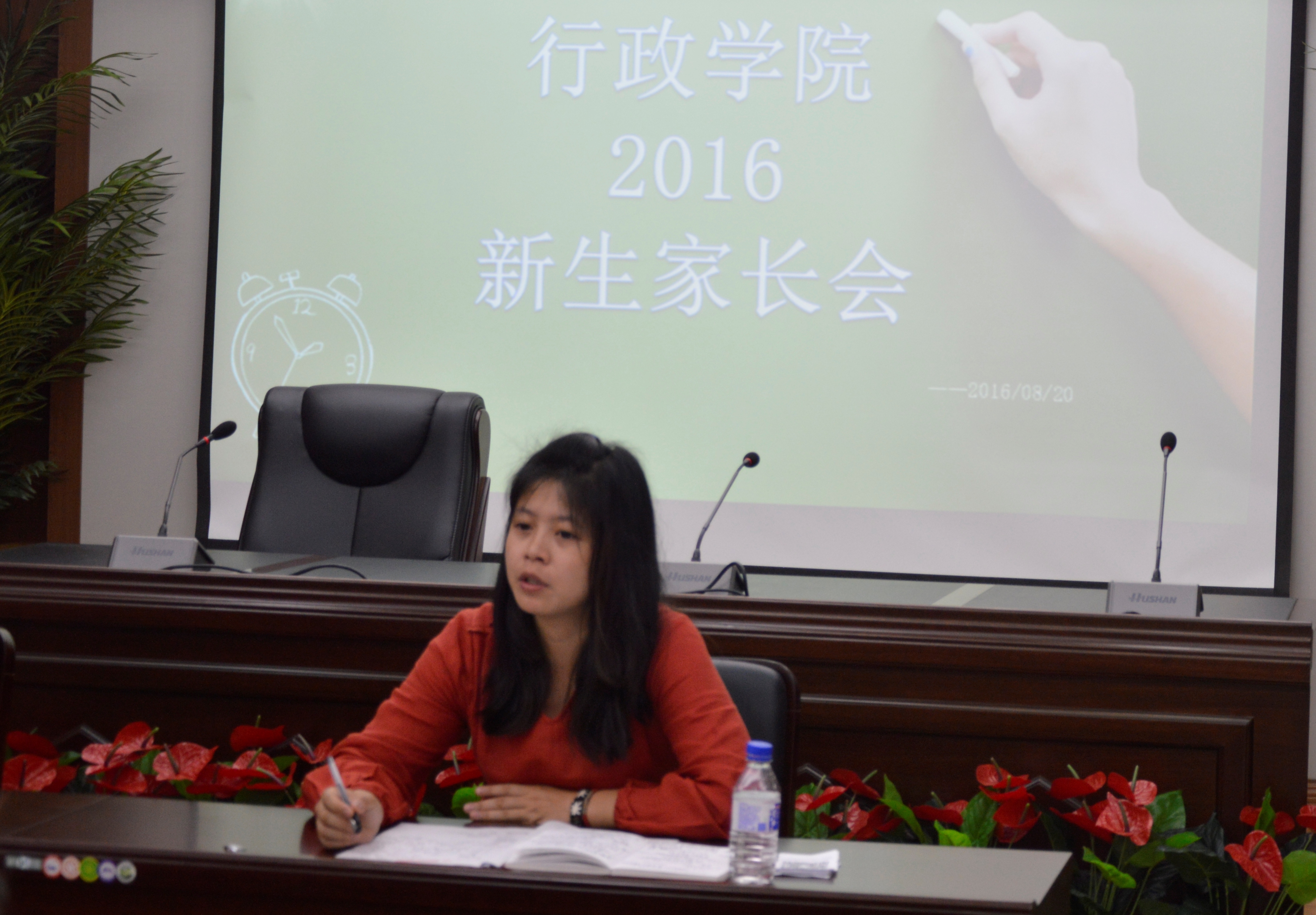 随后,辅导员曲畅竹向家长介绍了现阶段大一新生的住宿问题并向家长说明了今年的新生军训情况。15时许,2016年新生家长见面会顺利完成。