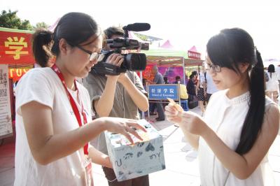 在新生报到的同时也在进行着“一句话采访”、“命运球”、采集“最美微笑”等活动。在“一句话采访”活动中,当被问到被吉大录取时的心情如何时,很多新生表示自己异常激动和开心;在抽取“命运球”环节,新生们或是收到了一份小礼品,亦或是一张祝福卡片。虽然刚刚进入大学还有些许羞涩和不安,但经过游戏的互动,新生们明显放开了许多,迎新现场气氛活跃。
