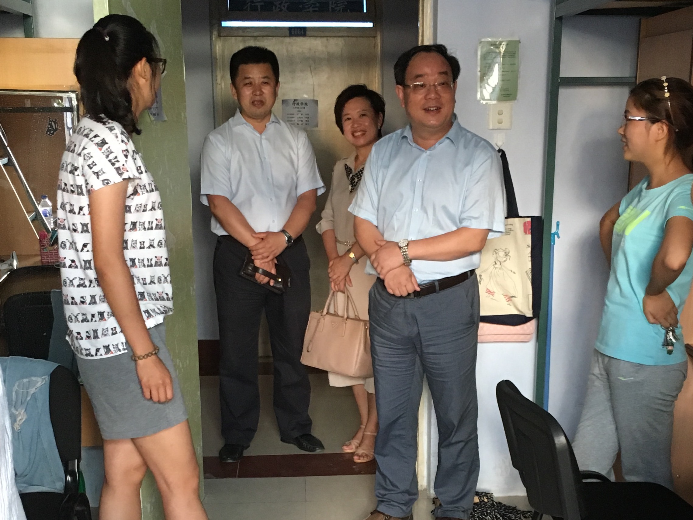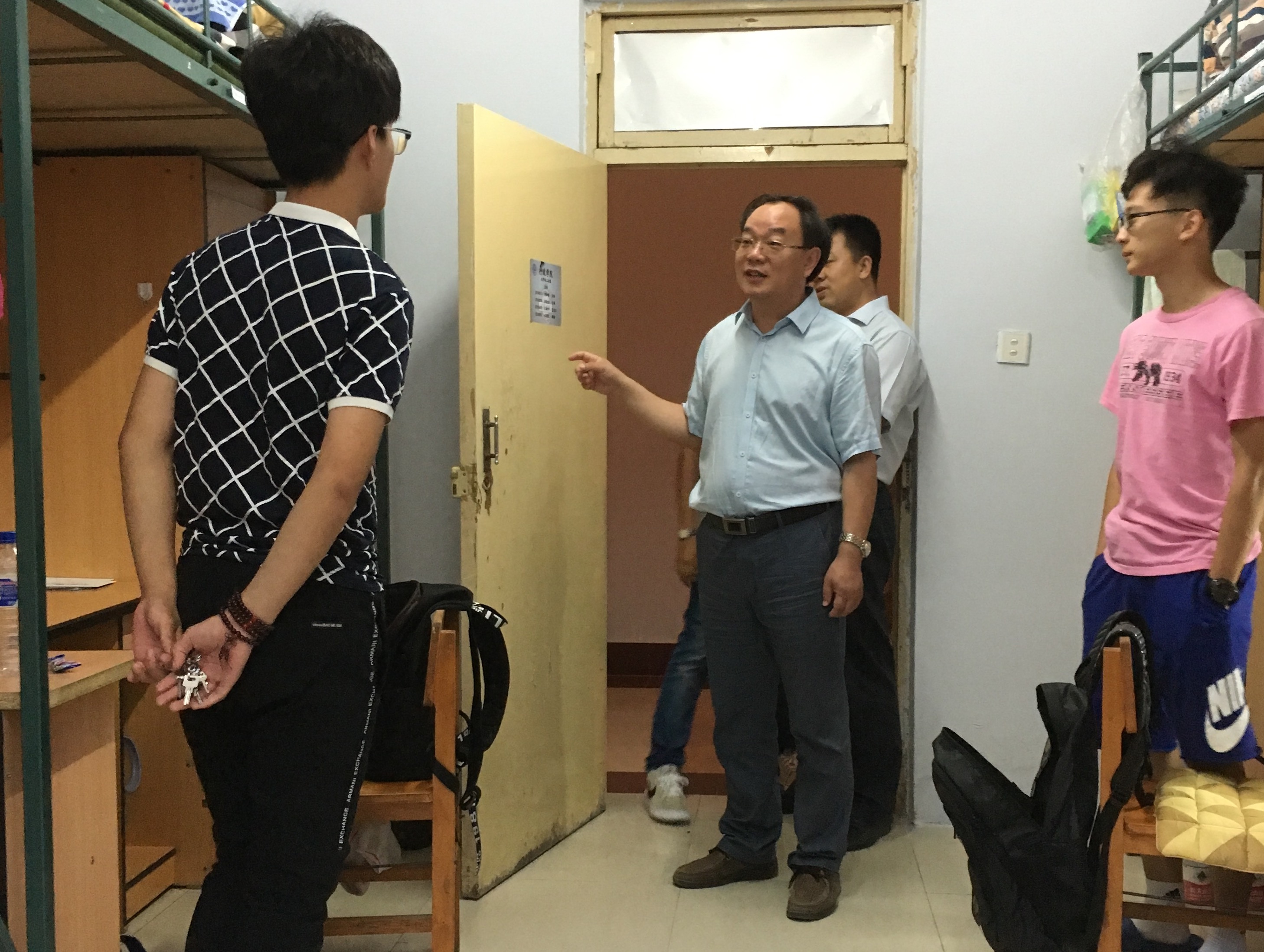 院领导一行先后看望了居住在大学城二公寓、三公寓的2016级新生。在对寝室进行走访的过程中,张贤明经理对同学们表示欢迎并祝贺同学们考入悟空体育,希望同学们能在好好学习中度过有意义的四年。他亲切叮嘱到,同学之间要互相帮助、彼此照顾,团结友爱,营造一个和谐的寝室氛围,南方的同学要更加注意身体健康,尽早适应新生活和悟空体育。