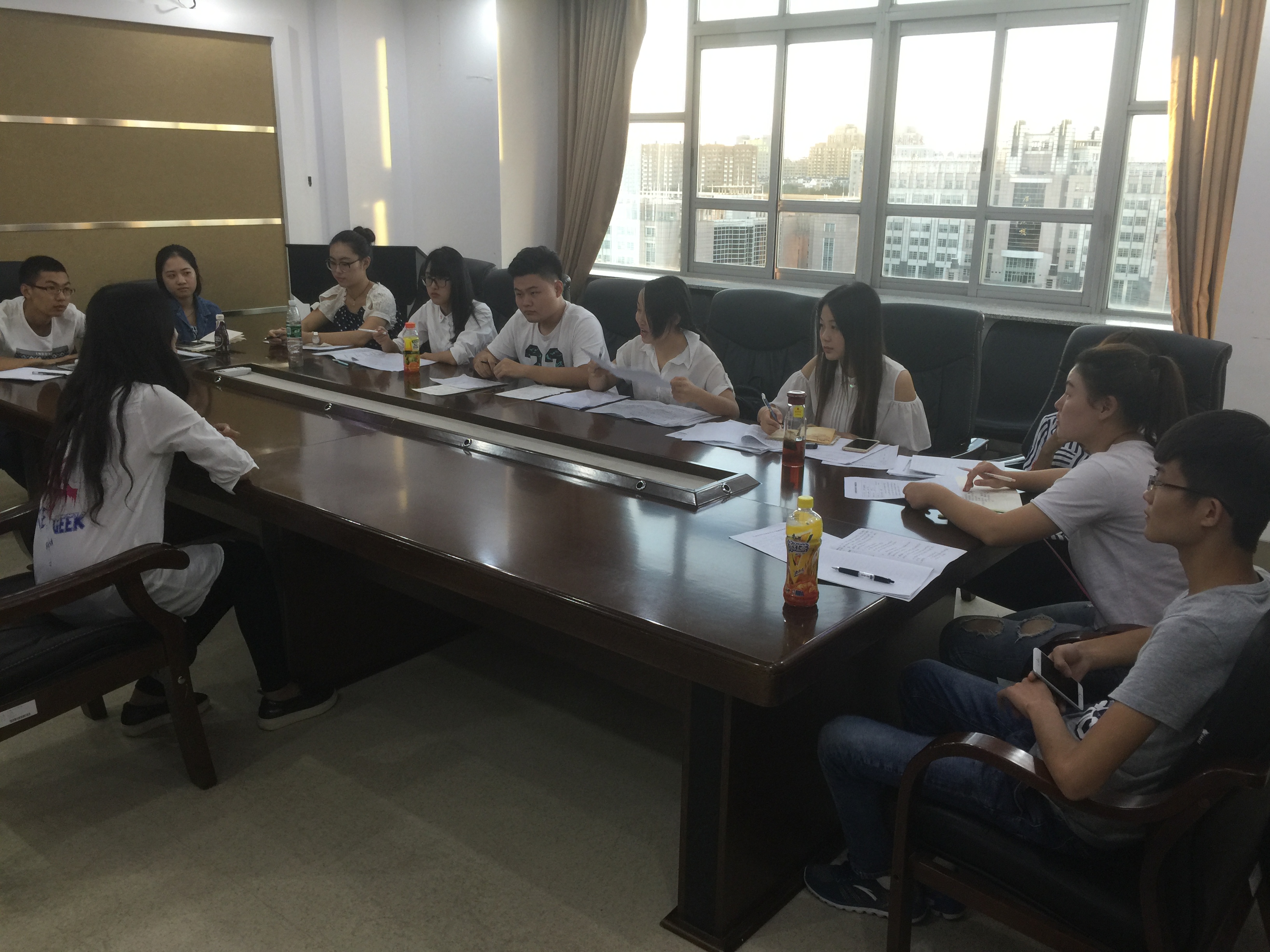 面试于26日晚17时准时开始,本次换届面试采取各员工组织单独面试成员的方式,有意愿参加换届竞选并完成25日笔试环节的2015级员工干部按照部门及姓名排序依次进入所在组织的会议室开始面试。每位员工的面试都由自我介绍和面试官提问两个部分组成,面试官们针对竞选员工的工作态度、工作方法、工作设想等方面进行提问。而在场地外等候的员工们也正进行着紧张的准备工作。19时,换届面试全部结束。