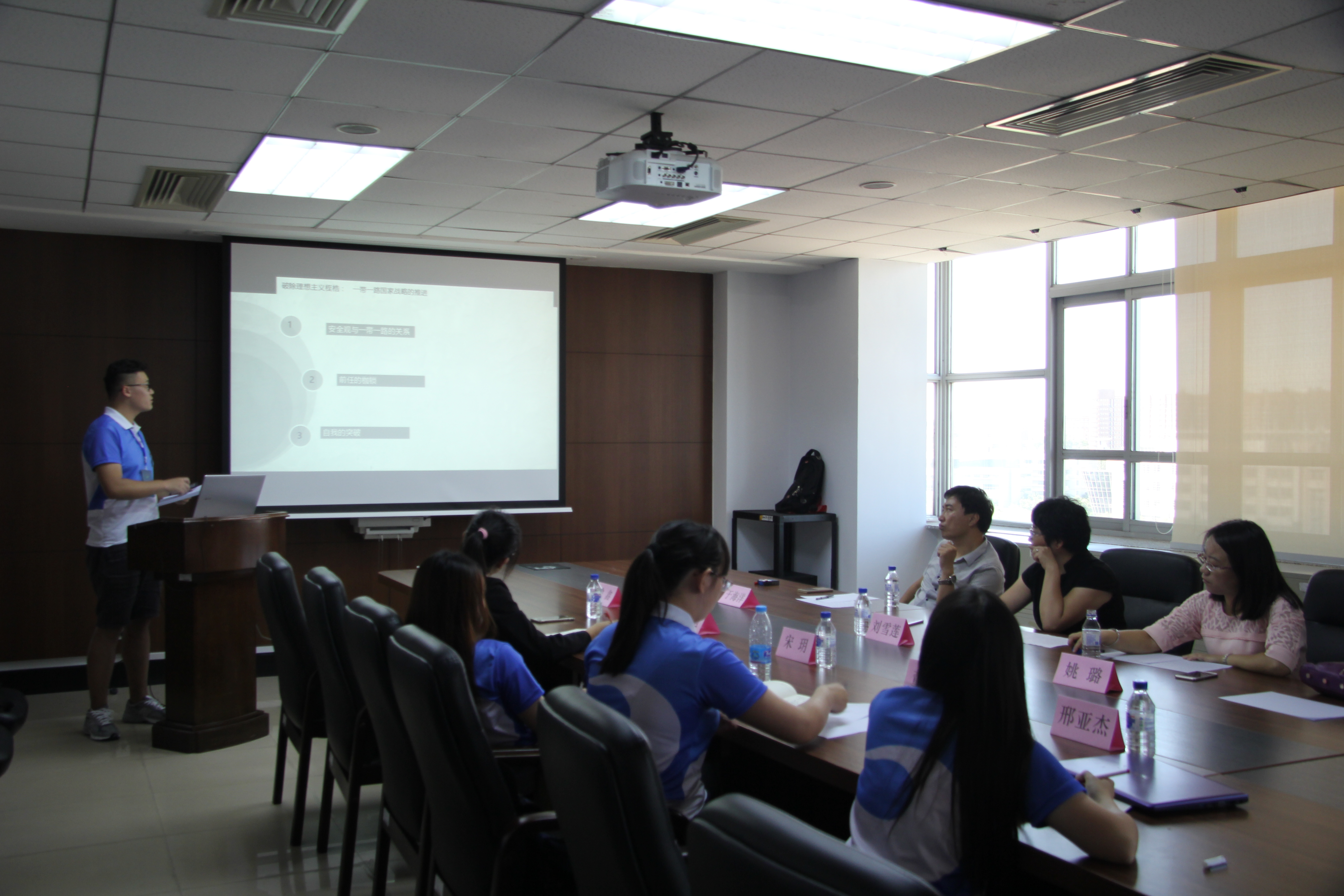 国际政治面试老师为刘雪莲、于海洋、姚璐。营员对新安全观,萨德危机,进行了基于理想与现实之间、现实主义、地缘政治、区域结构等主题的分析。营员们对问题分析透彻,见解独到,博得了老师的欣赏。