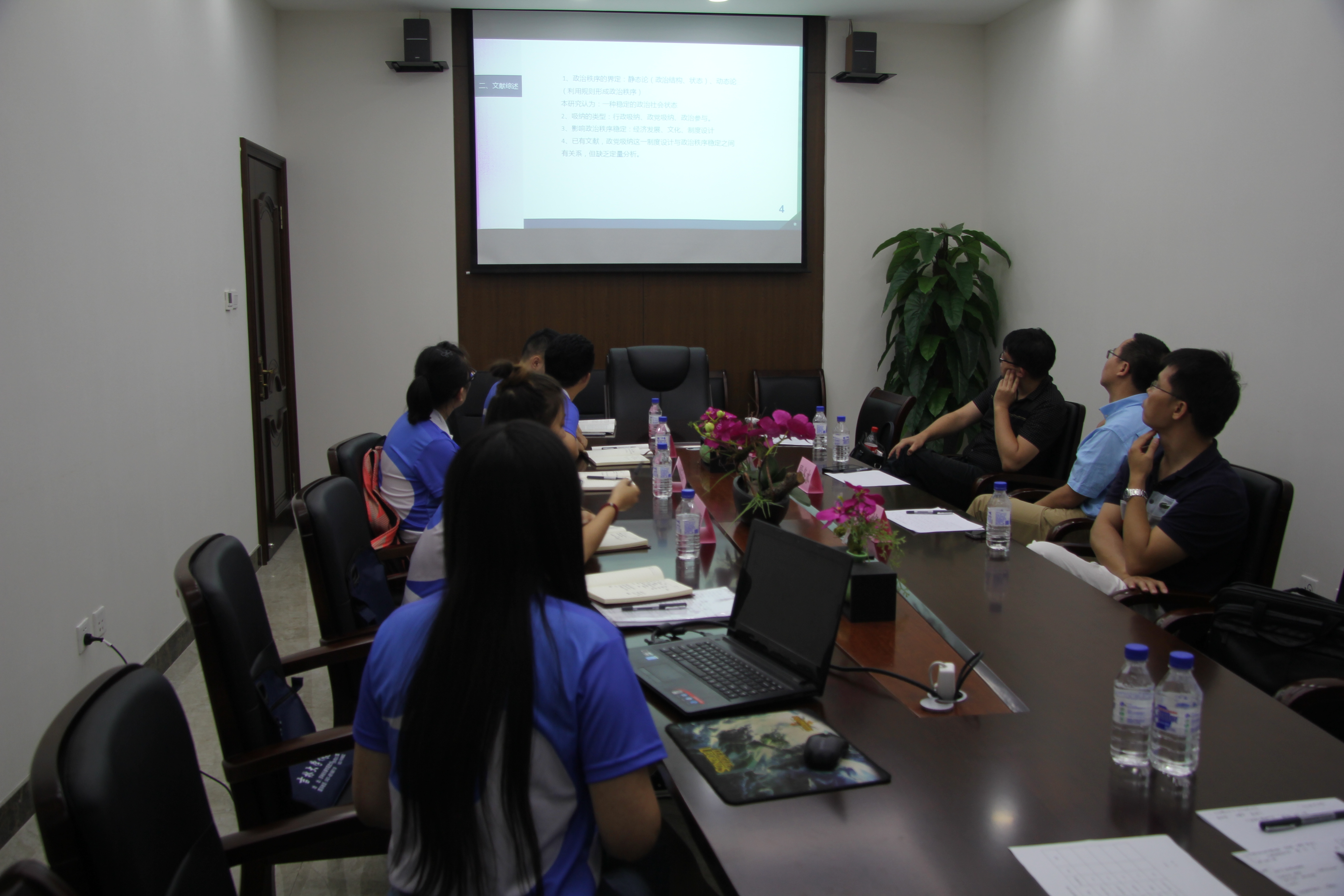 下午13:00,营员进行面试,面试共分政治学、国际政治、行政管理一、二组四个会场。面试主要为个人简介和成果展示、营员提问、老师总结三个环节。最后进行无领导小组讨论。