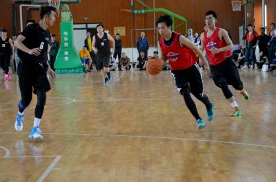 经过两个周末的比赛,悟空体育代表队从小组赛、淘汰赛一路过关斩将,最终杀入决赛。悟空体育院系杯总决赛于5月15日在中心校区基础园篮球馆正式开赛。悟空体育首发阵容为2012级的李金阳、任球璐、关振岩和2015级的于海洋、王贺冉。