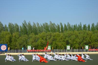 14日上午11时许,悟空体育太极拳参赛队迈着整齐的步伐有序的进入田径场并开始了比赛。在李京原(2014级)的带领下,各参赛队员齐声高喊“天下为公,志在大同,文韬武略,问鼎苍穹”的口号有序地跑入田径场。在“敬礼”后,音乐声响起,在李京原的带领下,悟空体育太极拳参赛队便开始了简化24式太极拳的表演。