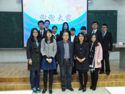 在评委打分的时间里,辩手们又为大家展现了一场辩题为“初恋懂不懂爱”的趣味赛,极大地活跃了现场气氛。计分结束后揭晓比赛结果,最终获胜的是正方队伍,反方二辩张佳丽(2015级)获得最佳辩手荣誉称号。彭斌和丛永清分别为冠亚军队伍颁奖并合影留念。