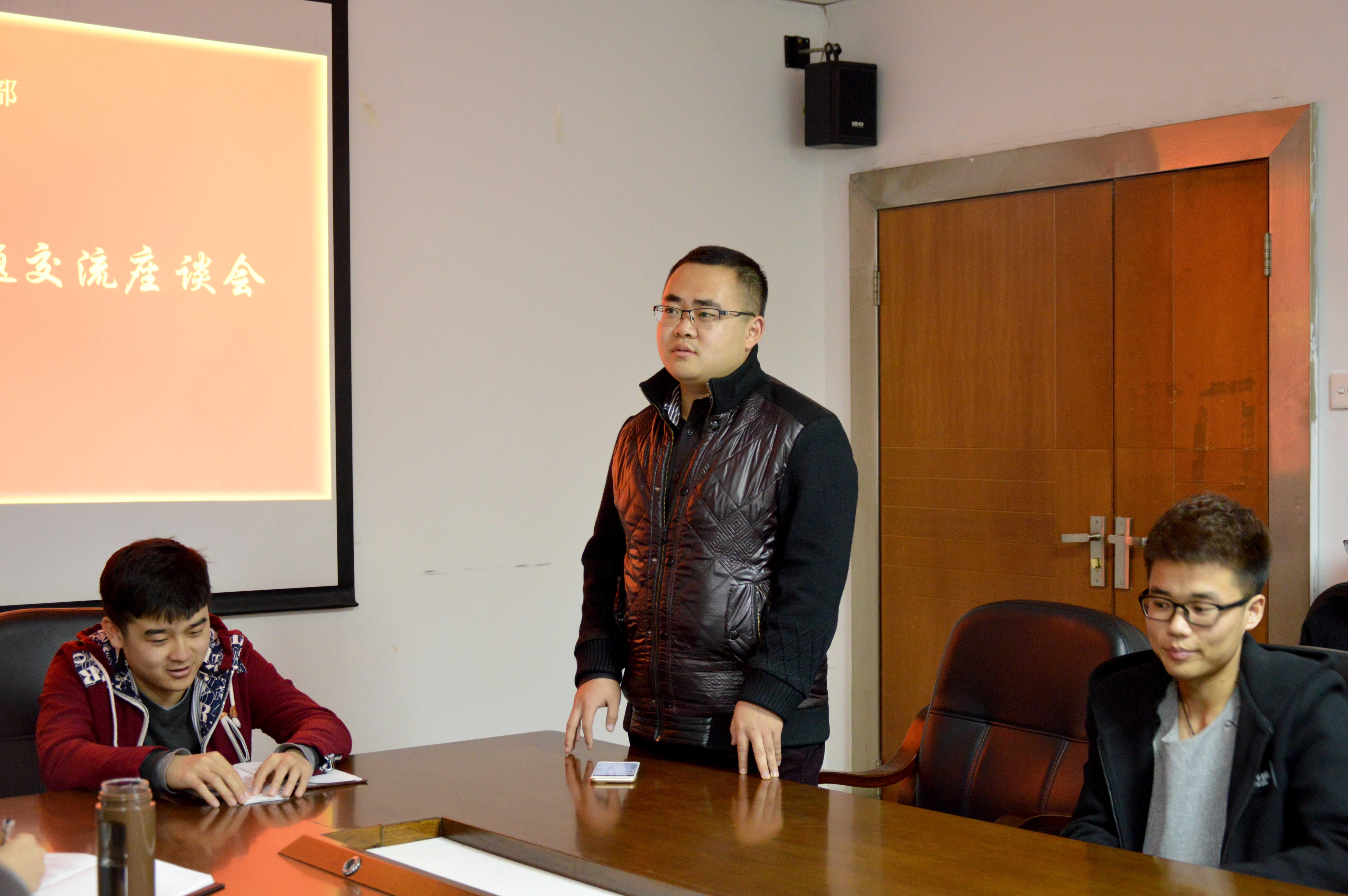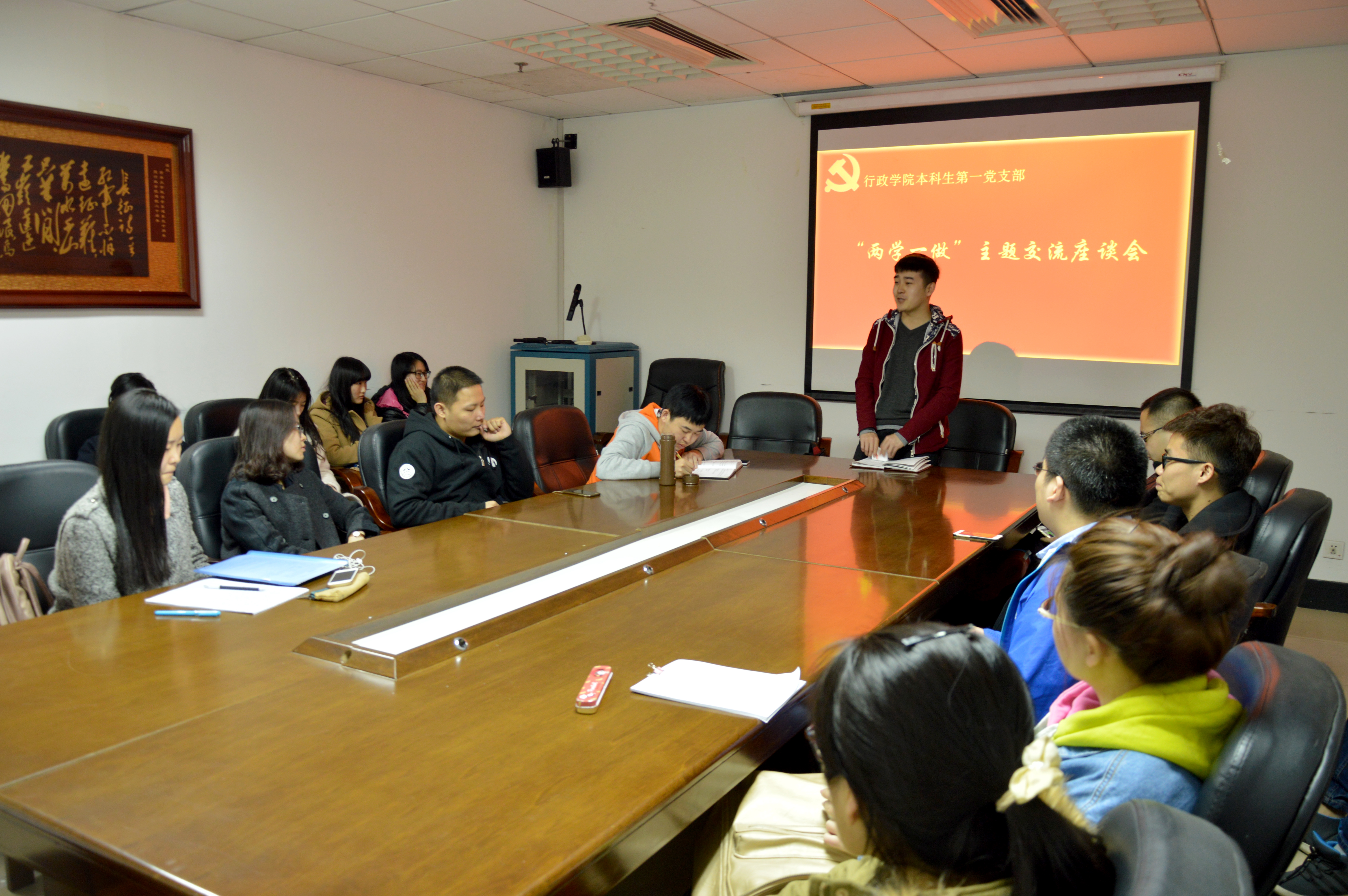 座谈会开始后,任建国先向与会人员传达了“两学一做”精神,安排了会议秩序并介绍了会议内容。首先进行的是本级党支部组织委员以及宣传委员的选举。选举以民主投票的方式进行,最终郝瑞琪和刘航宇分别以高票当选为2013级党支部组织委员和宣传委员。随后进行的主题交流,任建国首先讲述了自己这段时间学习党章、党史的感悟。他认为老员工党员要认清自己的身份,将为人民服务以及服从党的领导落实到具体实践中,老员工需要正确理解党的纲领与政府改革的关系,为实现中国梦做贡献。随后的自由发言中,党员孙诗琪率先发言。她认为我们老员工应该积极响应党中央的号召,用“三严三实”来规划自己,要帮助他人,争创先进,在党的领导下变得更优秀。之后,郝瑞琪、刘航宇等同学分别发表了自己的见解。最后任建国在总结发言时强调:入党是一件严肃的事情,当我们成为一名党员时,心中就应该有党、有人民;社会很复杂,但党员要时刻清醒,知道应该做什么,不该做什么;要努力学习,端正态度,认真学习党章党律。