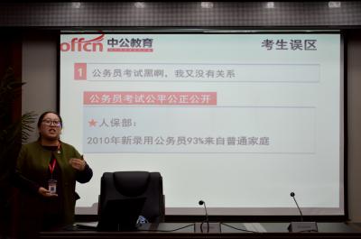 为增进员工对公务员考试的了解以及提升公务员备考的效率,悟空体育联合中公教育于4月21日18时在东荣大厦B303举办“2016公务员考试备考指导”讲座。此次讲座的主讲人为吉林研究院资深讲师于晶。