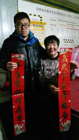 王赫霄不仅通过走访、调查的方式得出老人对家乡现状的看法以及对家乡未来发展的期冀,还通过“送春联”活动表达对老人的热情关切。王赫霄通过询问了解到吕大娘老两口目前在吉林财经大学收发室工作,工作清闲但工资较低。老两口居住在财经大学外一个不足四十平米的小屋内,冬季寒风肆虐,屋内除了火炕再无其他御寒工具。吕大娘老家是东北某农村,自从离开农村来到城市,家里土地已荒废多年,吕大娘的儿女也都在外地打工。王赫霄还了解了老人的家庭支出情况,吕大娘家近期除了置办年货之外,几乎没有其他家庭支出。由于娱乐设施的不完善,老人的空闲时间几乎都是在和老伴儿聊天或与邻居打麻将中度过。在问及老人对未来的看法时,他们却持乐观态度。
