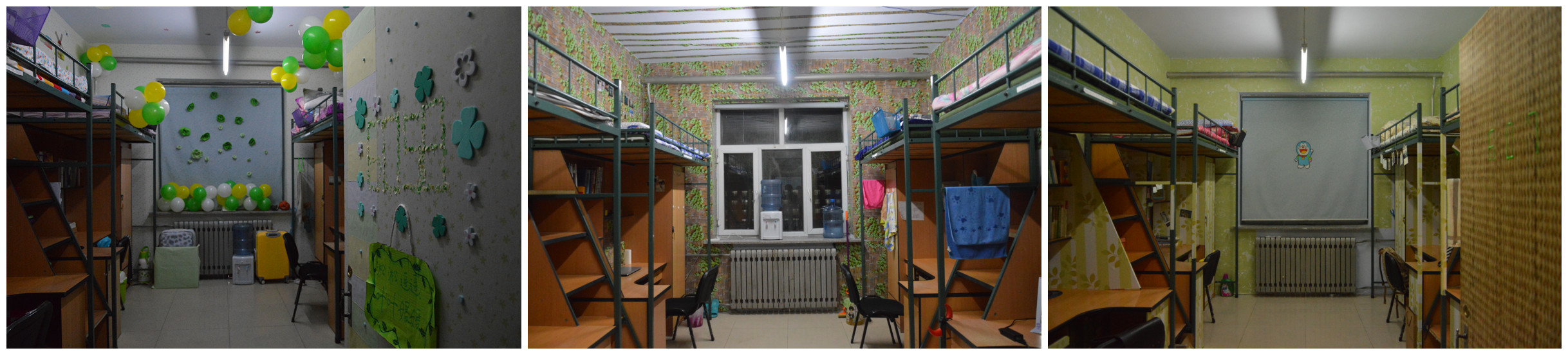 评比主要从寝室命名、整体活动、代表介绍、安全纪律、联谊关联五个方面展开评比。同学们都积极发挥自己的创新思维,围绕选择的主题,充分利用身边资源装扮寝室,为我们诠释了“没有最美只有更美”。有的寝室自然清新,有的温馨素雅,有的活泼搞笑,有的古朴怀旧,一间间独具匠心设计的寝室让评委们赞不绝口,他们对寝室的装扮给充分予肯定。评比认定的其他工作将在之后进行。